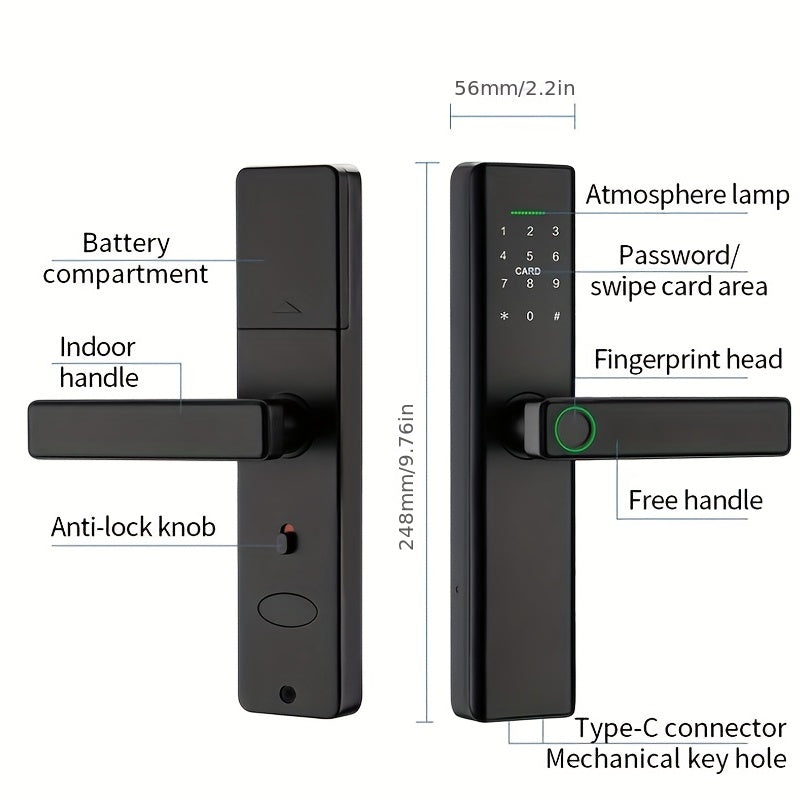 Bir nechta kirish variantlari (Parol, Kartochka, Barmoq izi, Kalit) va TT App/Tuya App qo'llab-quvvatlaydigan Wifi Elektron Qulfi.