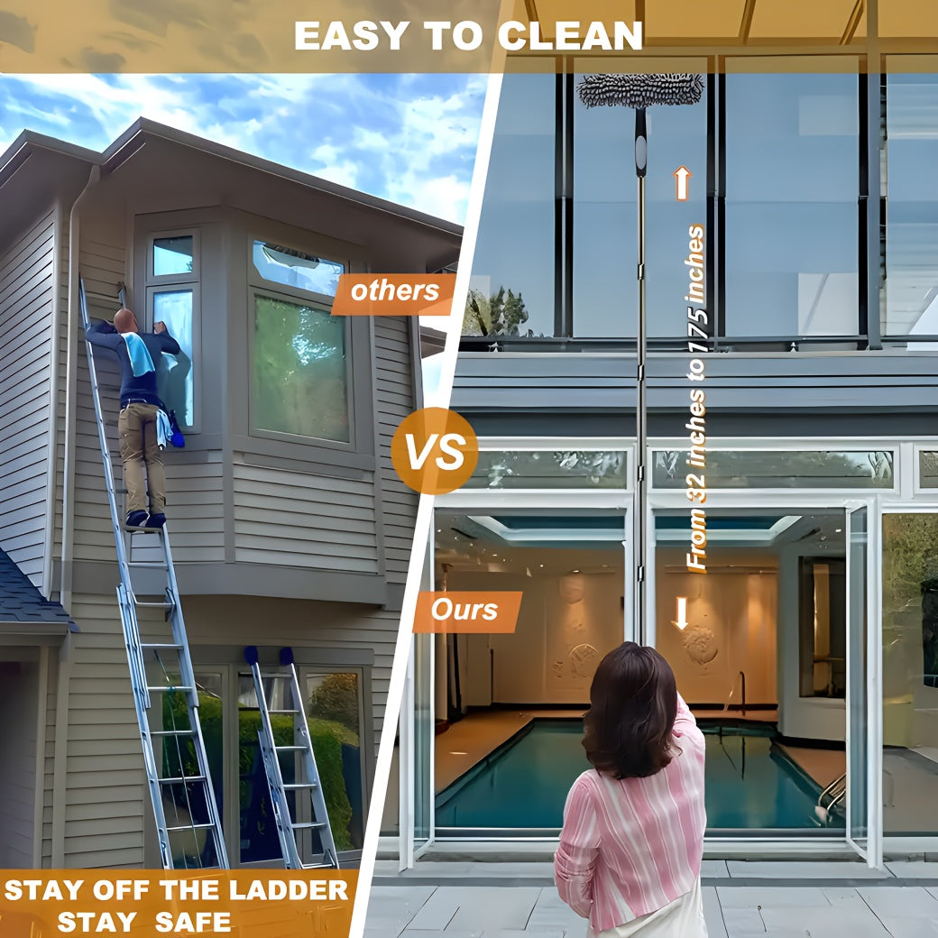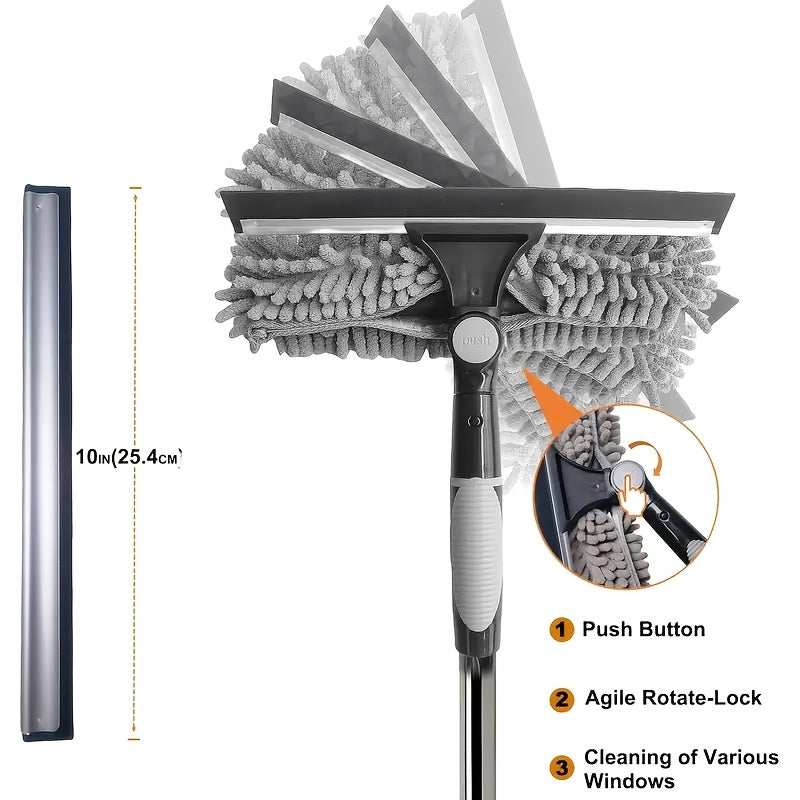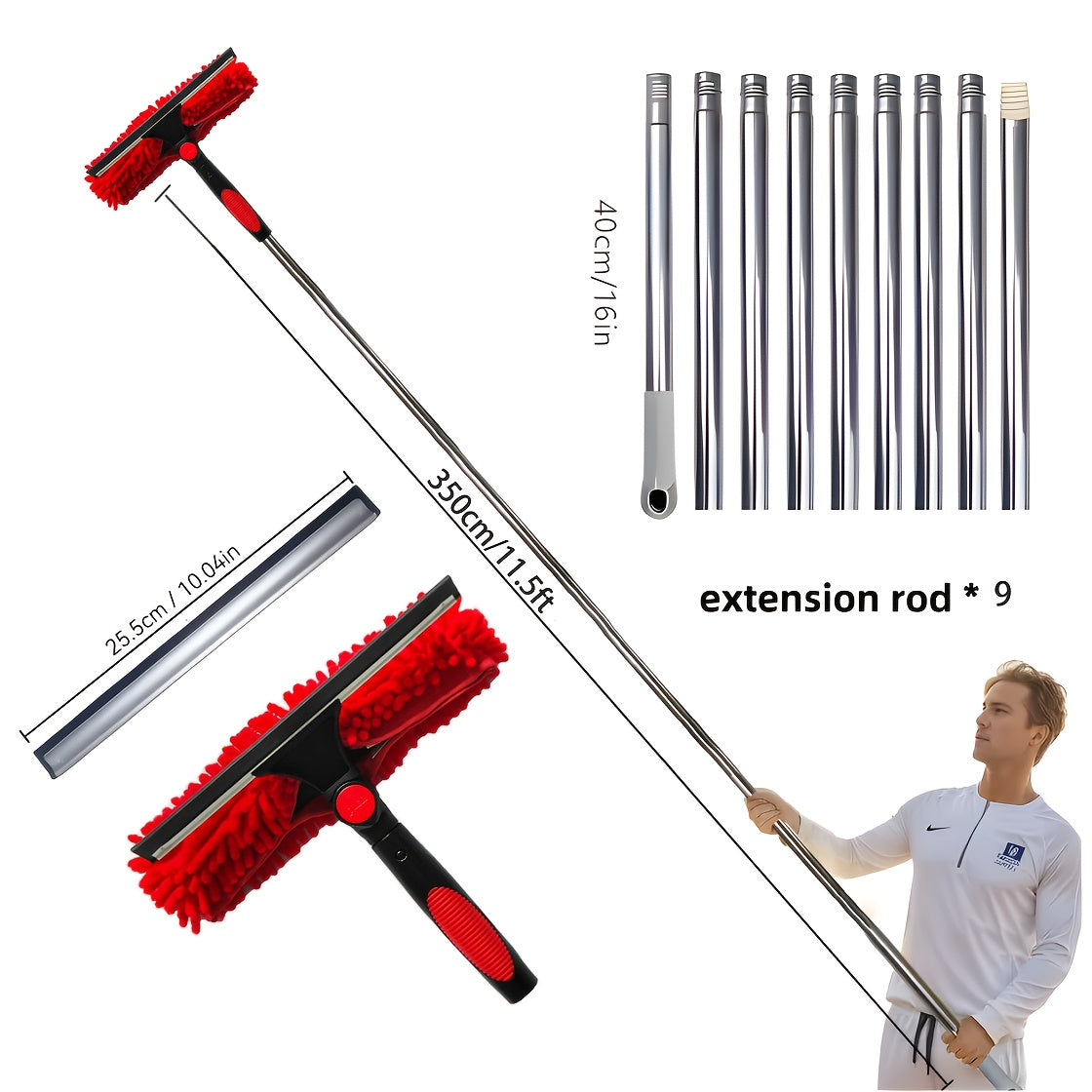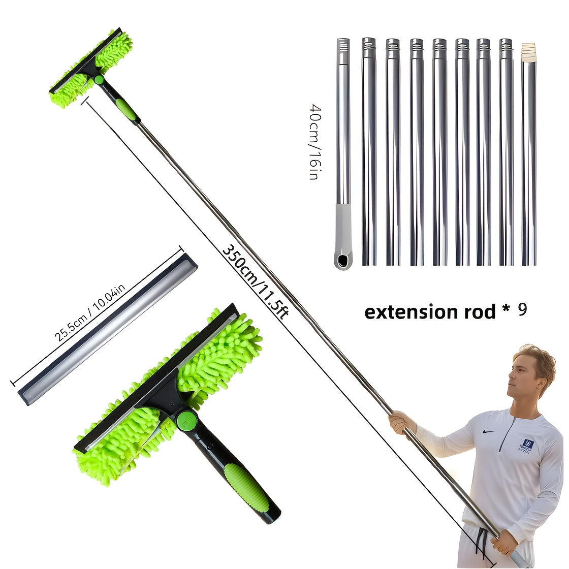 Deraza tozalash to'plami, yuvish vositasi, squeegee, mikroto'qima mato, zanglamas po'latdan yasalgan tutqich, rezina bosh va 59.74 metrga yetadigan masofa, 5 rangda mavjud. Elektr energiyasi talab qilinmaydi.