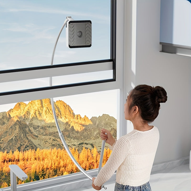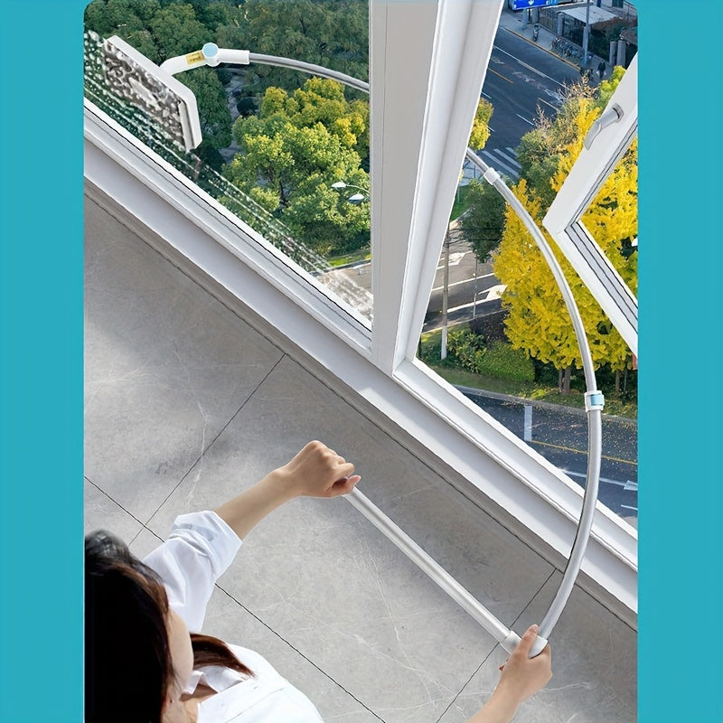 Tashqi foydalanish uchun deraza tozalash to'plami - yashik shaklidagi ikki tomonlama teleskopik shisha tozalash asbobi, yashash xonasi va boshqa shisha yuzalar uchun; elektr yoki batareyalar talab qilinmaydi, qo'lda ishlaydi.