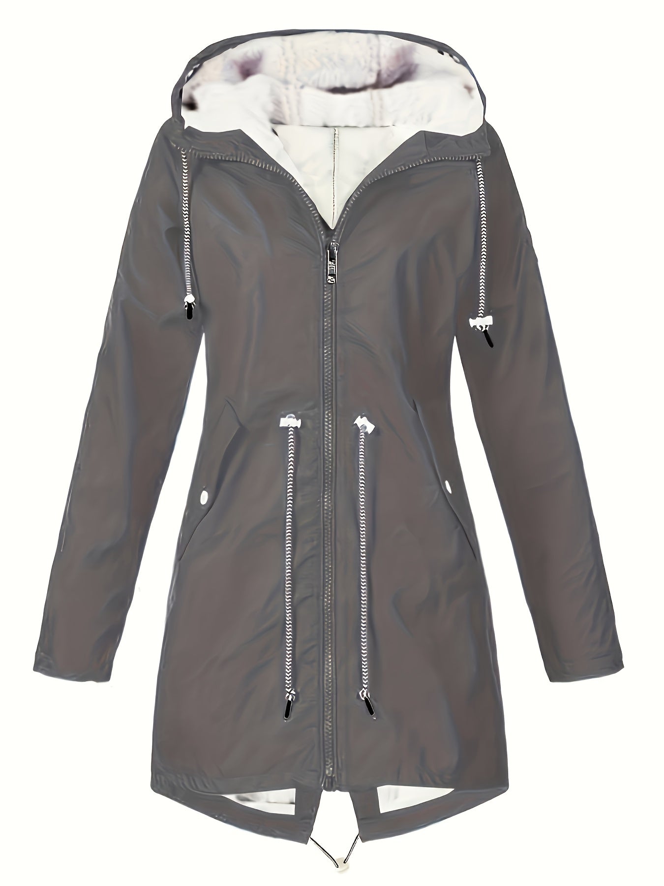 Katta o'lchamlar uchun qishki trench palto 100% polyesterdan tayyorlangan, cho'zilmaydigan bir rangli mato. Chiqish ipi detali va uzun uzunlikka ega.