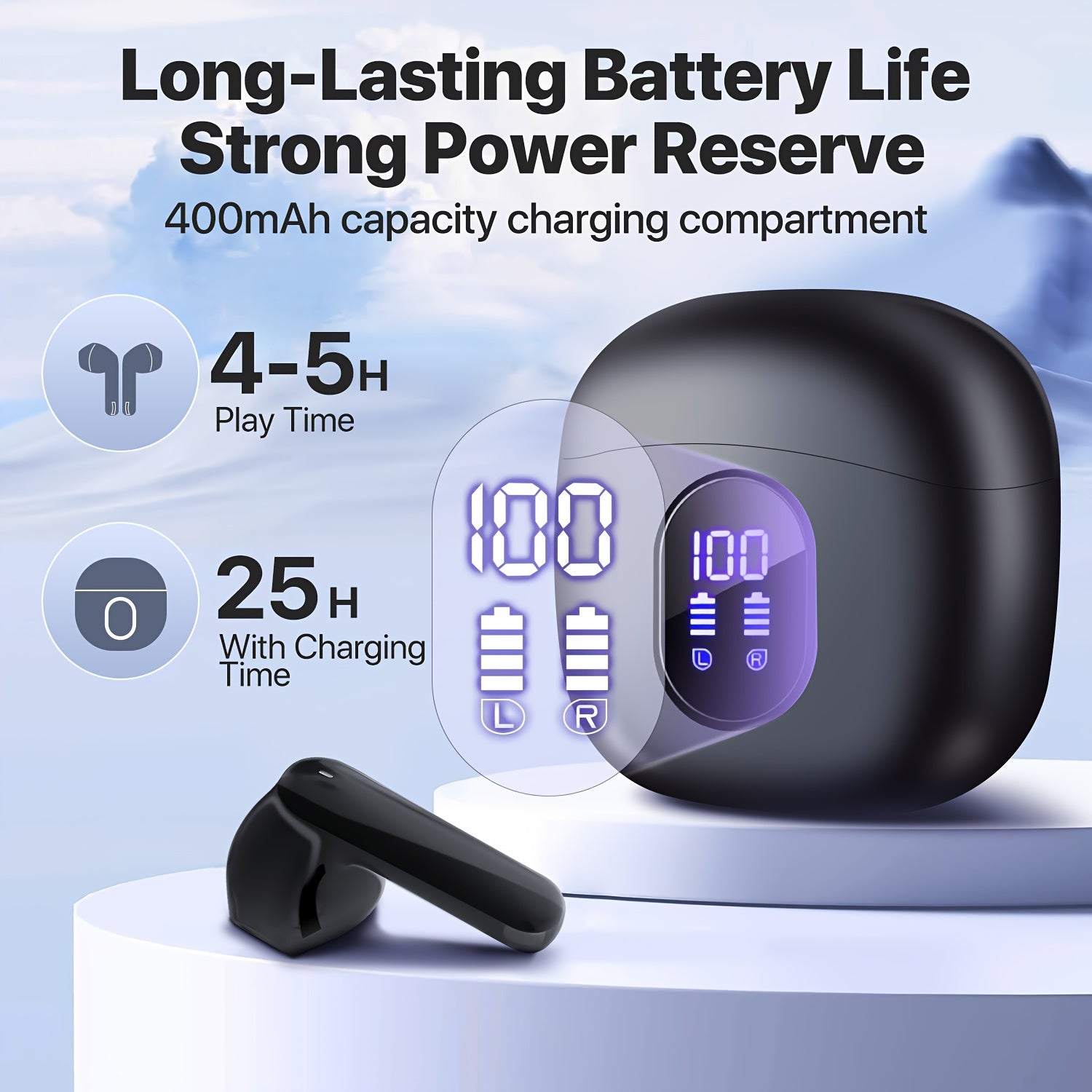 Simsiz 5.3 quloqchinlar: 25 soat o‘ynash vaqti, stereo ovoz, kuchaytirilgan bass, 4 ta ENC mikrofon, LED displey, shovqinni bekor qilish, sport uchun ideal, Android/iOS bilan mos keladi.