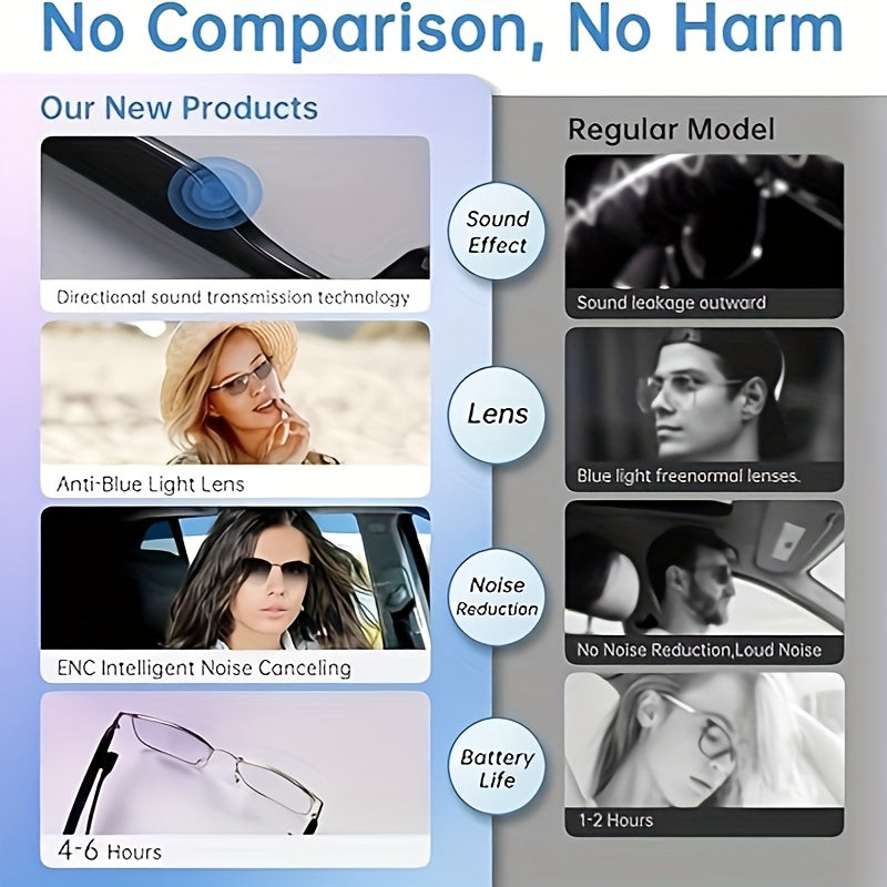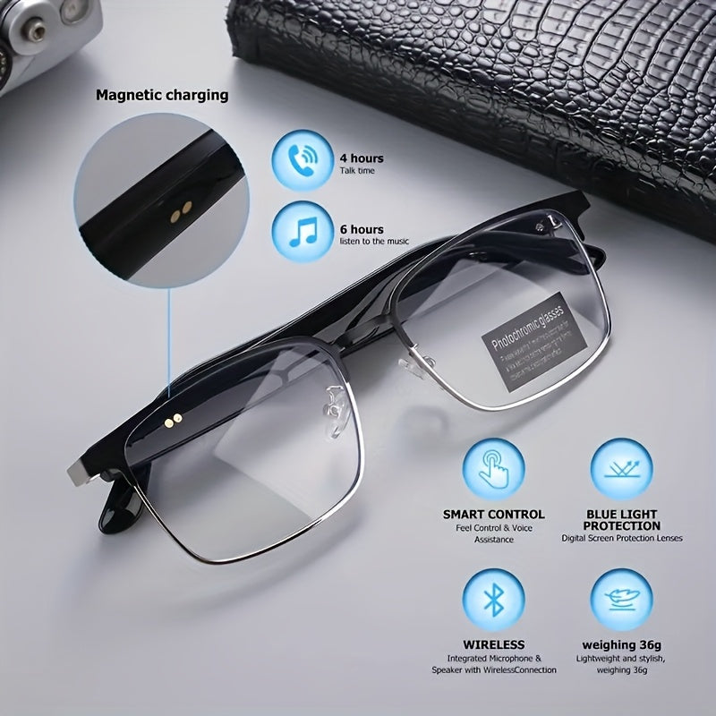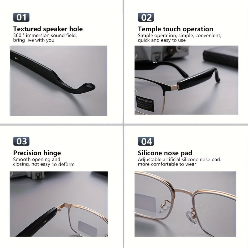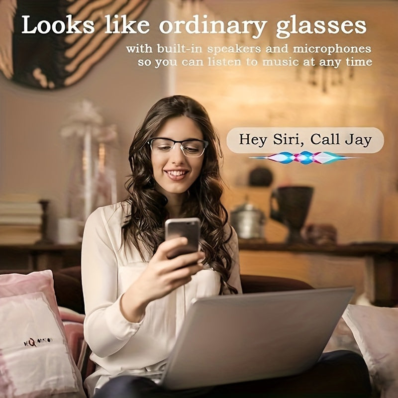Mikrofon va dinamiklari bo'lgan simsiz audio aqlli ko'zoynaklar, polarizatsiyalangan linzalar va ovozli yordamchi.