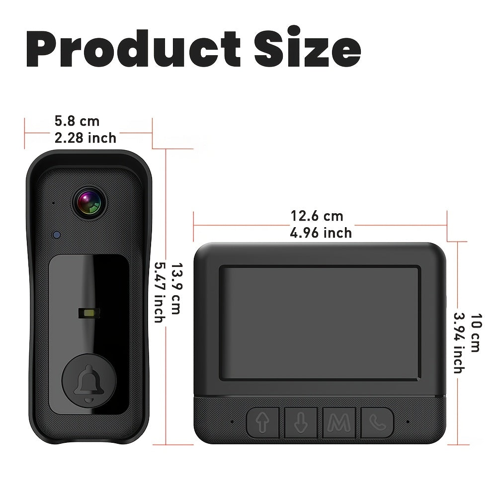 Sleek qora dizayni, HD tungi ko'rinish, ikki tomonlama audio, foto va video yozib olish, sensorli ekran va ilova orqali boshqarish, ovoz o'zgartirish funksiyasi va osonlik bilan ta'minlangan simsiz eshik qo'ng'irog'i kameras.