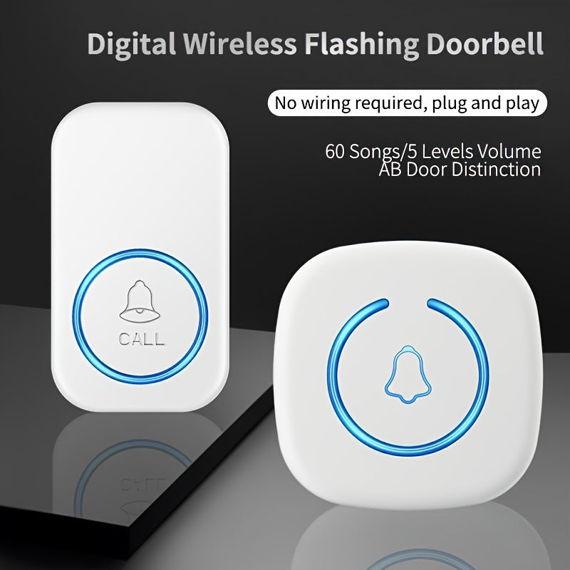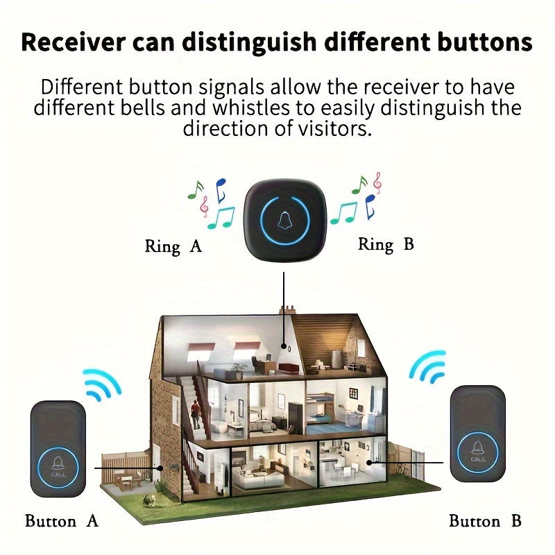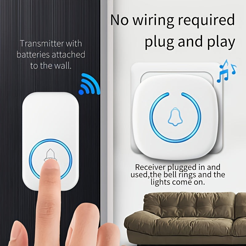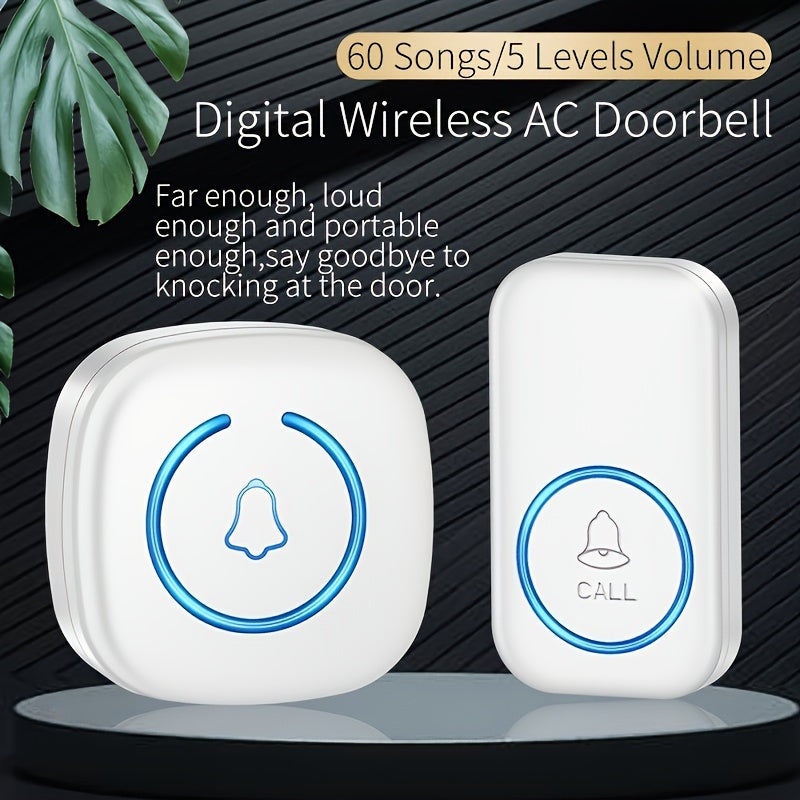 Simsiz eshik qo'ng'irog'i to'plami 1 to'plamni o'z ichiga oladi, 304.8 metr masofaga, 60 ta qo'ng'iroq, LED yoritish va klassik tugma.