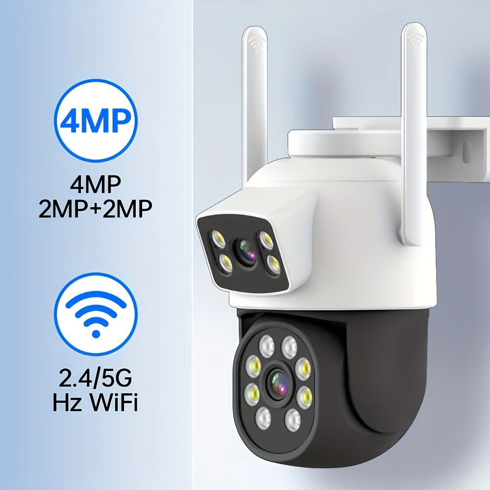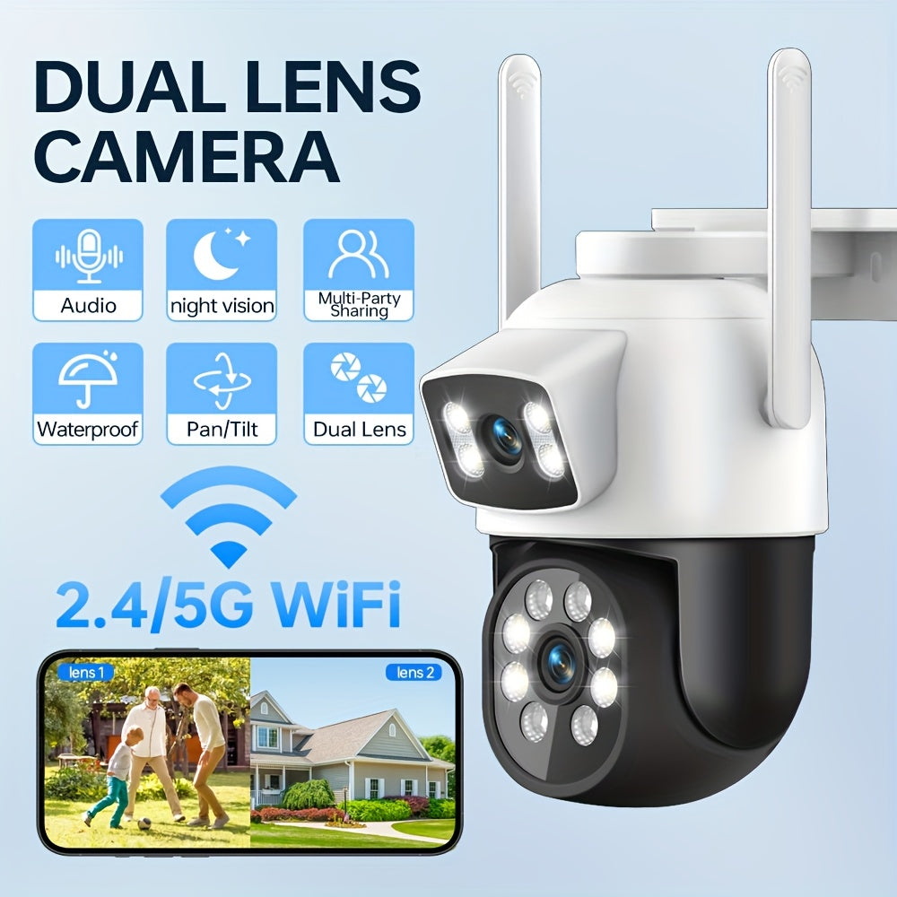 AI harakatni aniqlash, rangli tungi ko'rinish, 360° masofadan ko'rish, ikki tomonlama audio va mustahkam qurilishga ega simsiz ikki linzali ochiq havodagi xavfsizlik kamerasi.