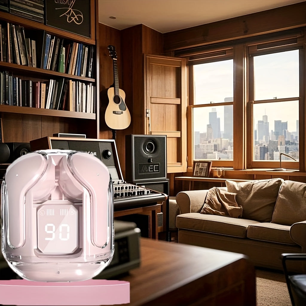 Ushbu simsiz ichki quloqchinlar chiroyli shaffof dizaynga, LED quvvat ko'rsatuvchisiga va yuqori aniqlikdagi ovoz sifatiga ega. Uzoq batareya muddati va qulay kiyim bilan, bu quloqchinlar sayohat, sport va boshqa har qanday holatlar uchun ideal. Ular ishonchli audio aksessuarga ehtiyoj sezadigan har kimga ajoyib sovg'a tanlovi bo'ladi.