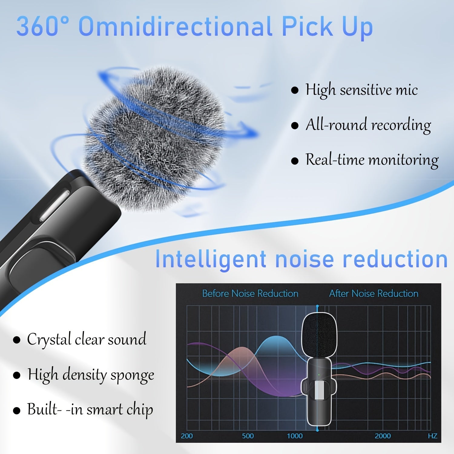 Smartfonlar, noutbuklar va audio video yozuvlar uchun shamolga chidamli jun to'pi bilan simsiz lavalier mikrofon, video intervyular, podkastlar va vloglar uchun mukammal.