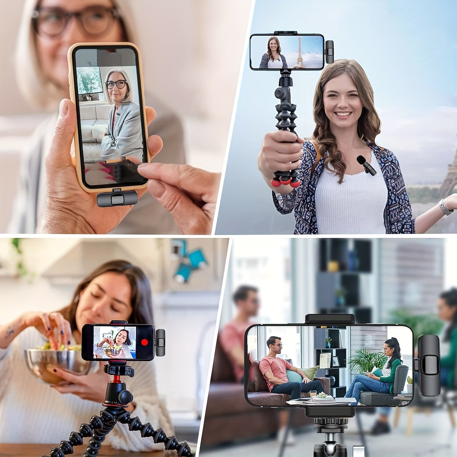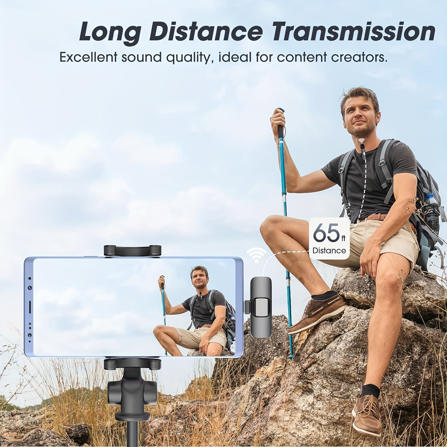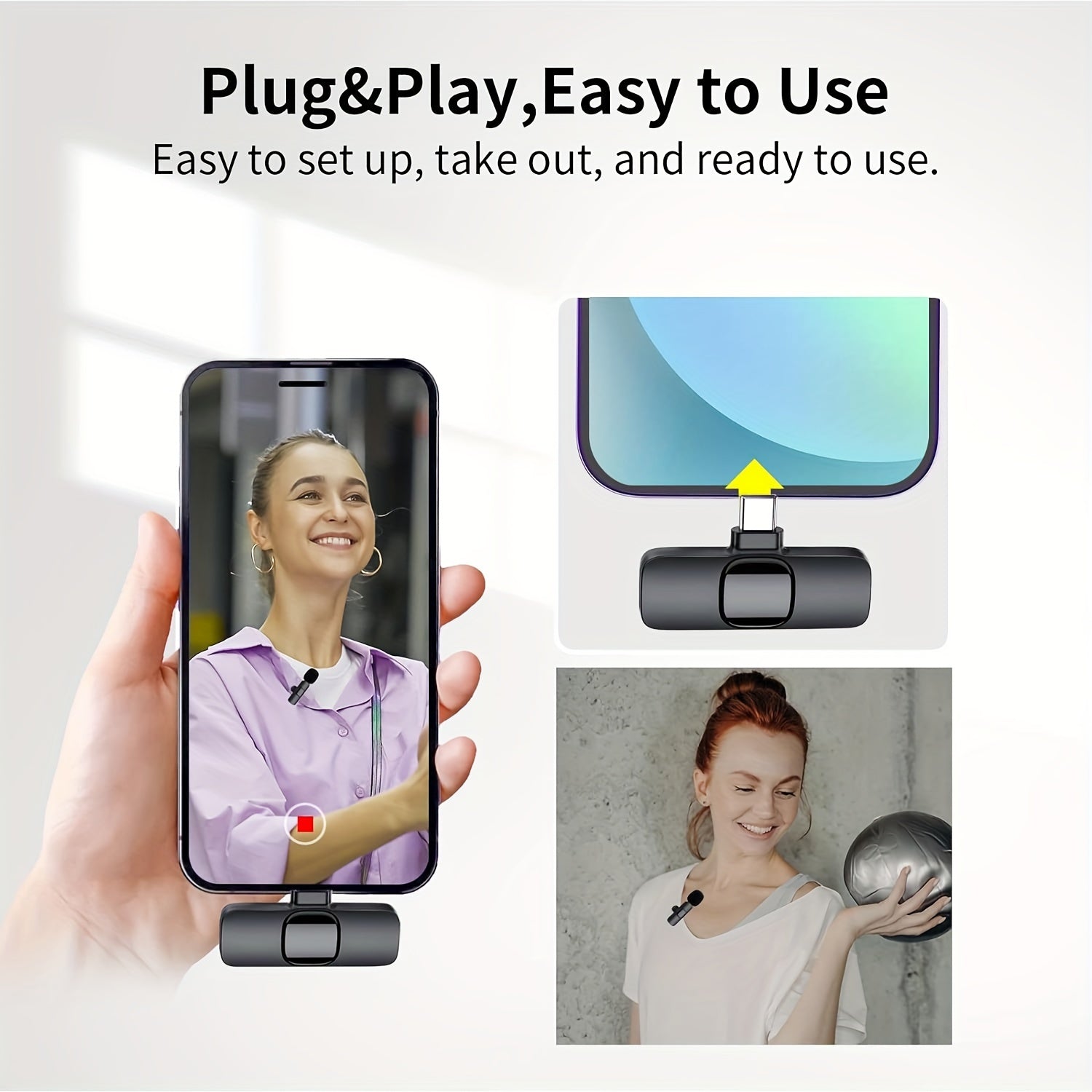 Smartfonlar, noutbuklar, audio va video yozuvlar, intervyular, vloglar uchun simsiz omnidireksional kondensator lavalier mikrofon.