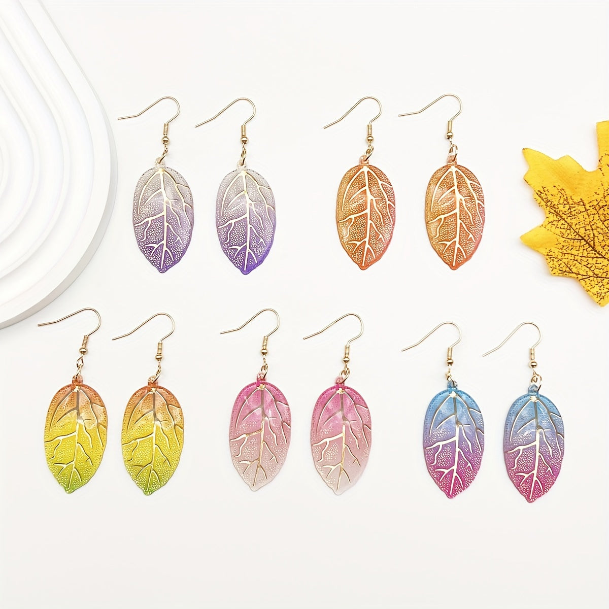 Ayollar uchun akril bargli sirg‘alar, gradient ranglar, engil, bohem uslubi