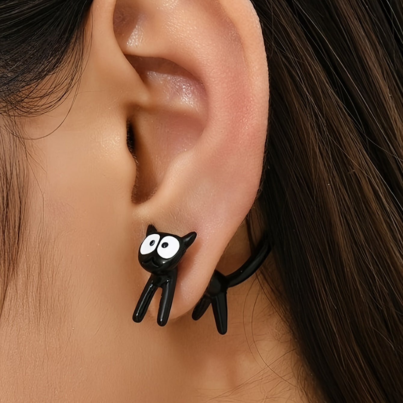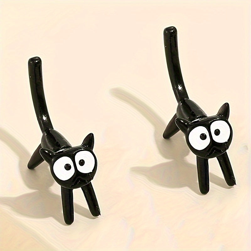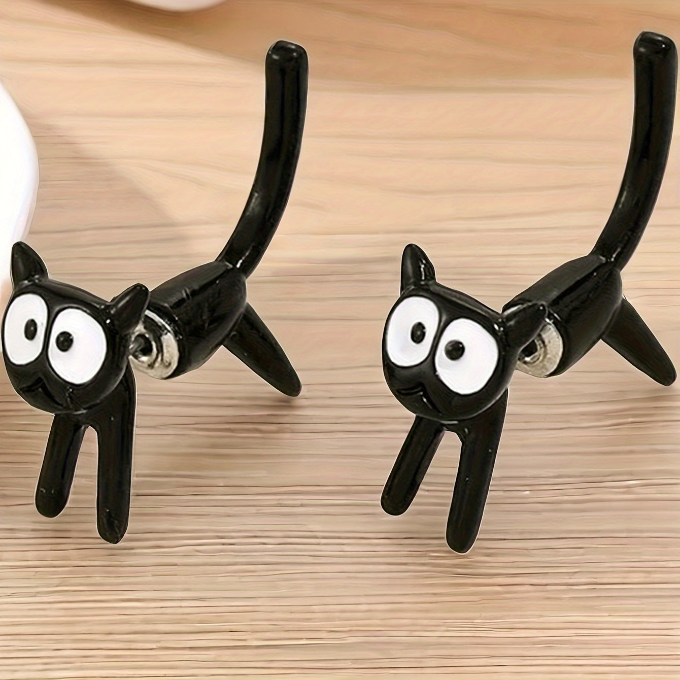 Ayollar uchun qora mushuk stud uzuklar, zink alloy, hayvonlar, mushukchalar, to'y uchun zargarlik buyumlari