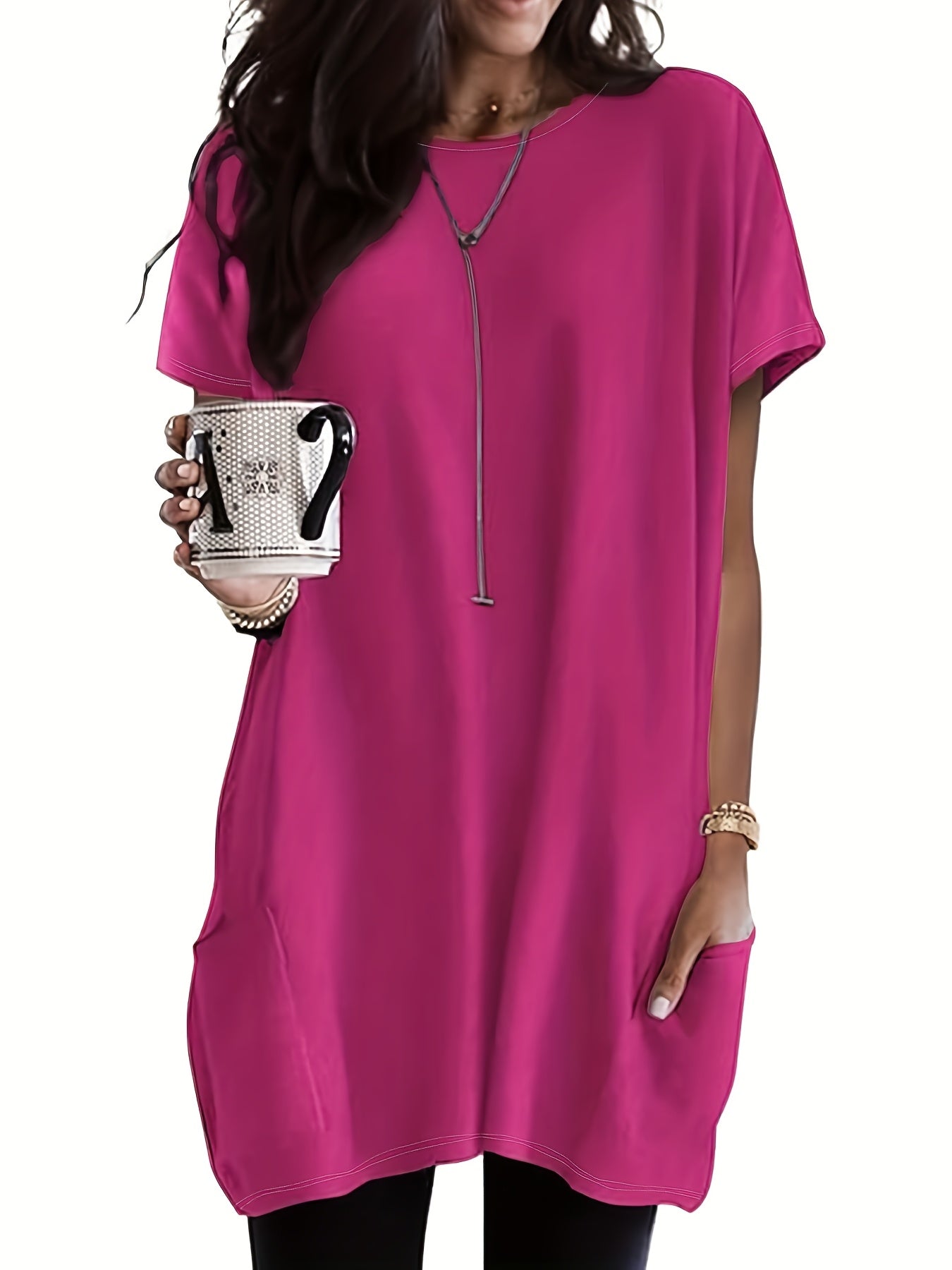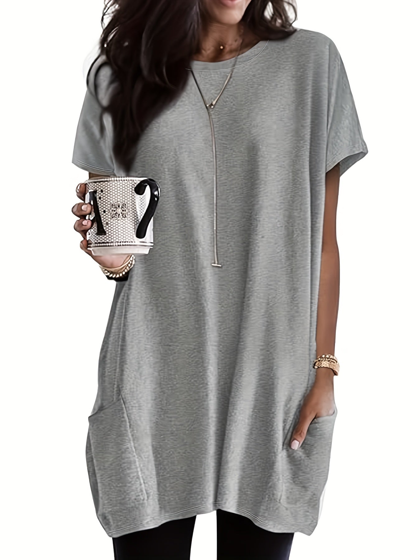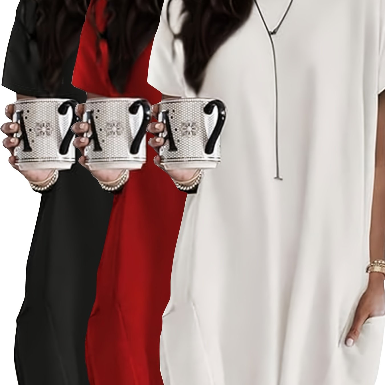 Ayollar uchun kundalik paxta qisqa ko'ylakli futbolka to'plami, cho'ntaklar bilan, uchta qism