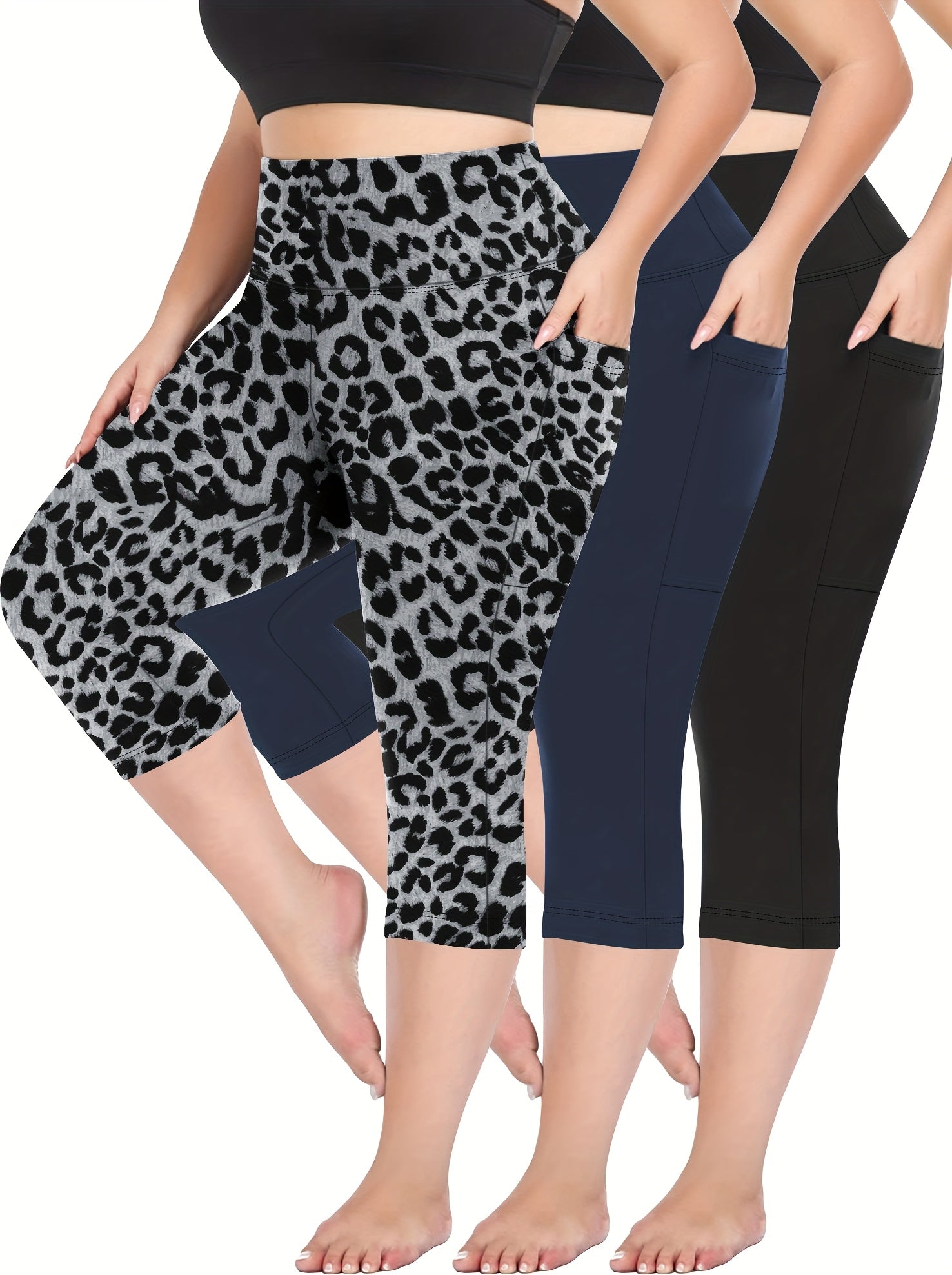Ayollar uchun paxta materialidan tayyorlangan, katta o'lchamli, yuqori belli, qisqa shimlar, yon cho'ntaklar bilan, yoga va sport uchun