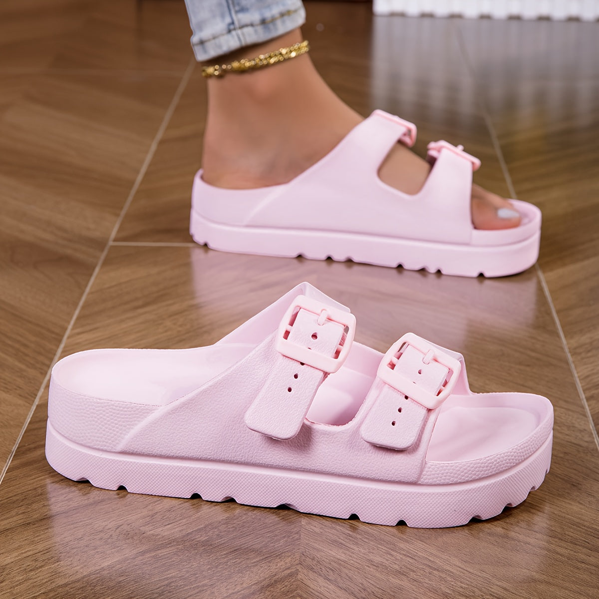 Ayollar EVA sozlanadigan ikki tokchali slayd sandalki ochiq toe, kundalik yozgi ichki va tashqi foydalanish