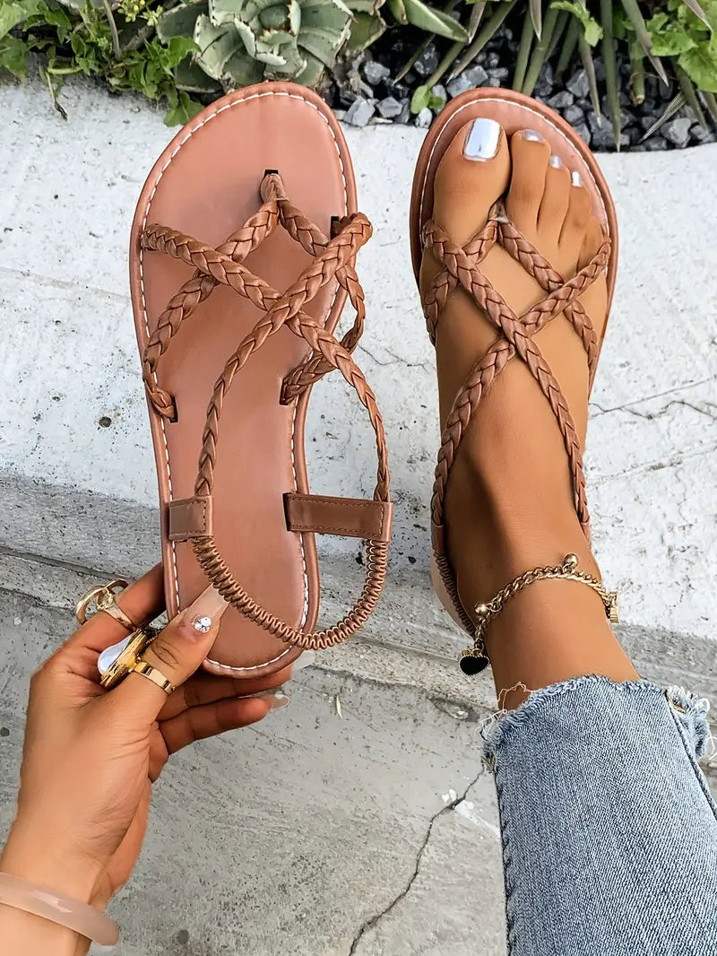 Women Flat Beach Sandals Toe Loop Casual Slip-On Versatile Shoes