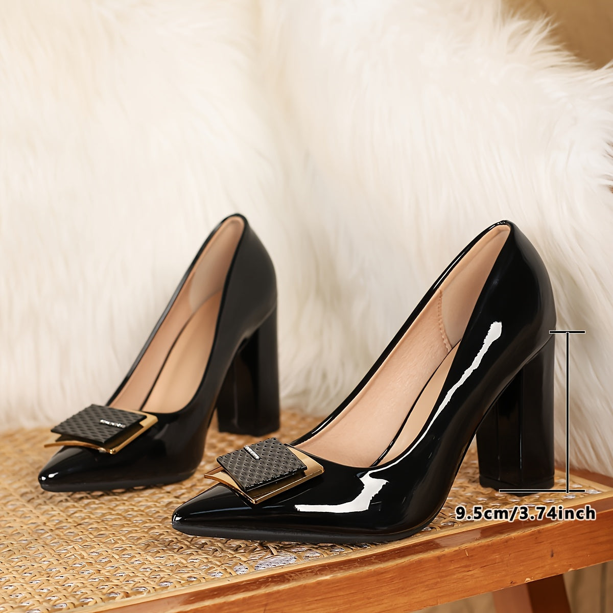 Ayollar uchun yuqori stilettolar, yaltiroq yuzali, nuqtali barmoqli, blok poyafzal, bilak bog‘lamli