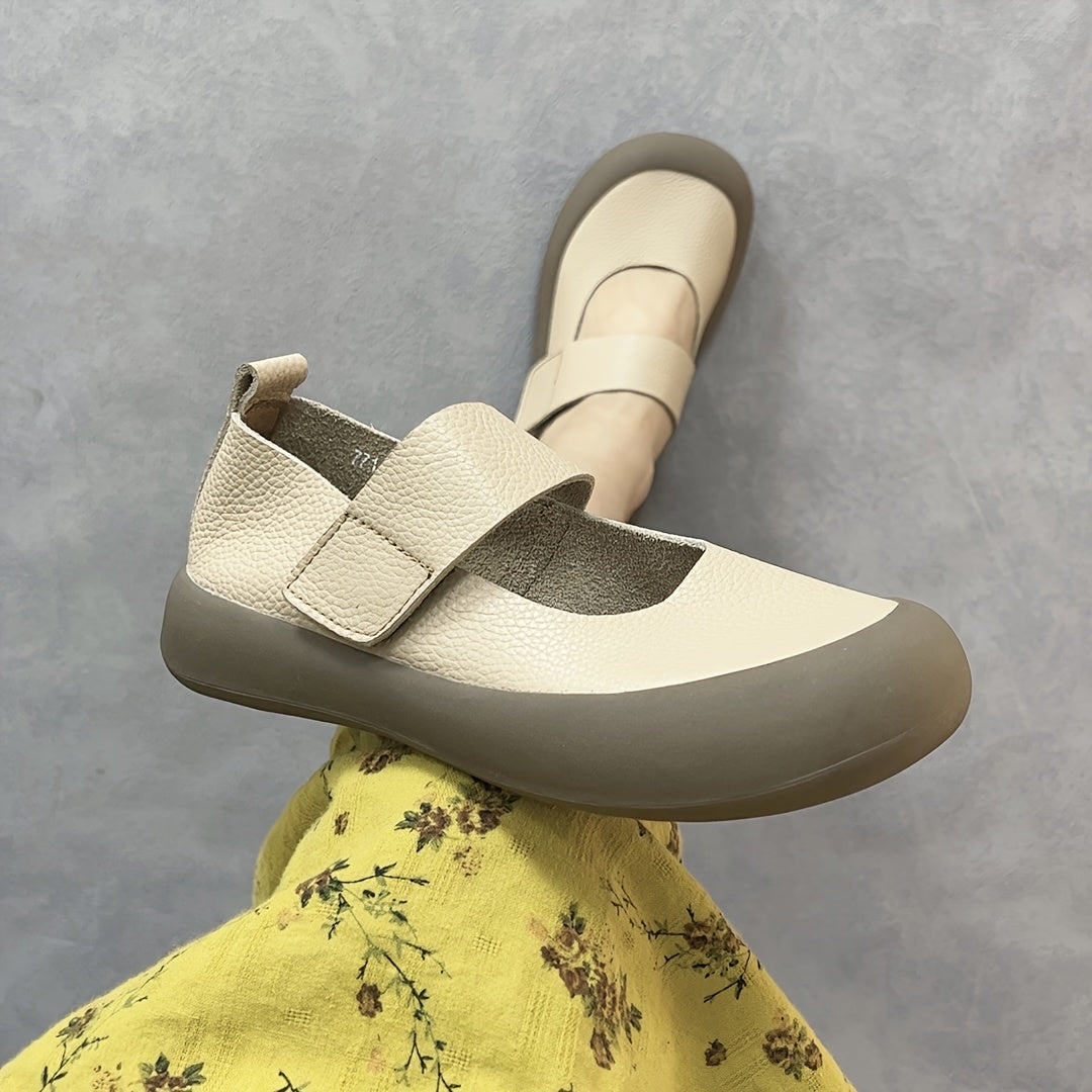 Women Leather Flat Shoes Breathable Slip-On Casual Brown All-Season