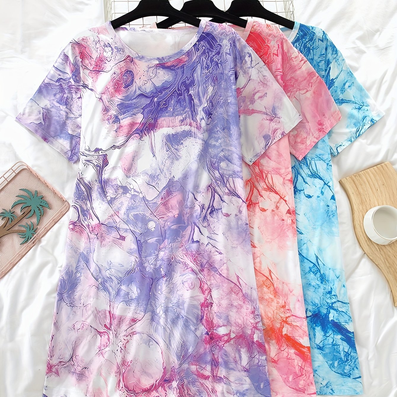 Women Leopard Print Short Sleeve Dresses Polyester Elastane Nightwear