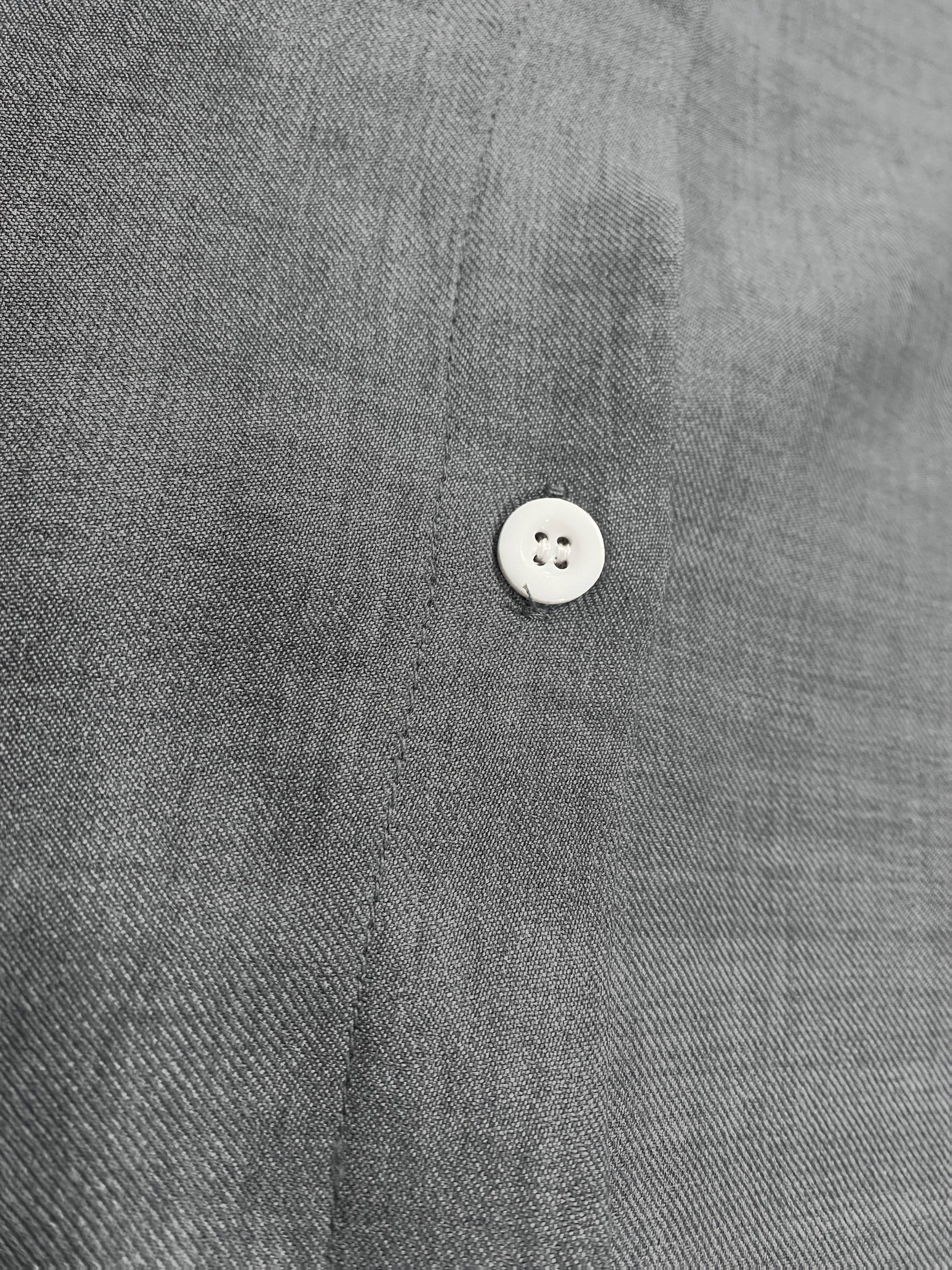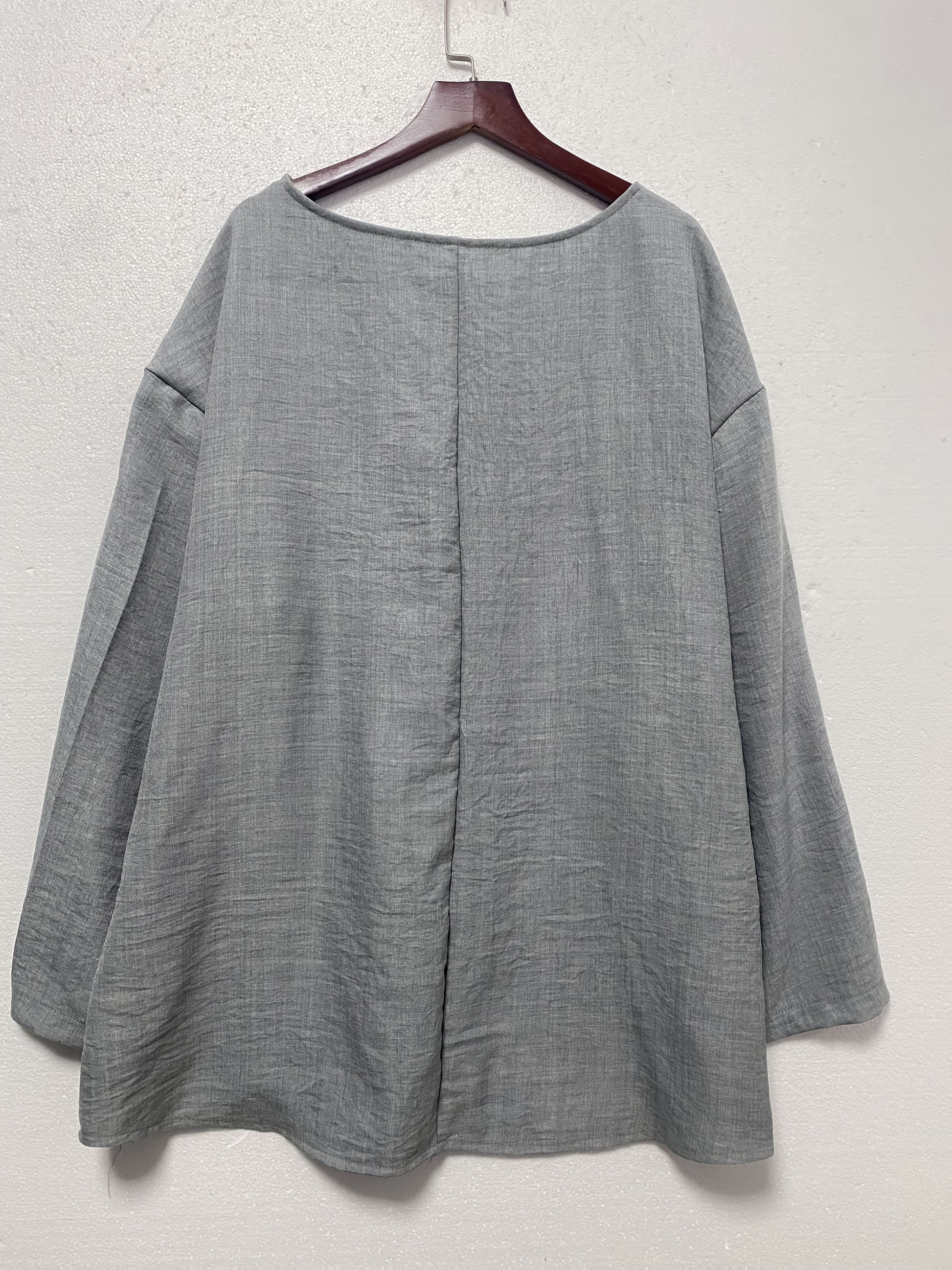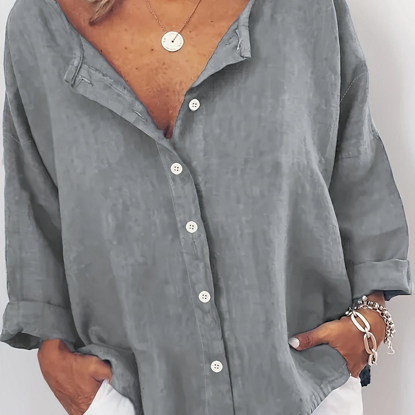 Ayollar uchun katta hajmli kundalik erkin fit kulrang bluz, kruj bo'yin, tugma bilan yopiladi, ribli manshetlar