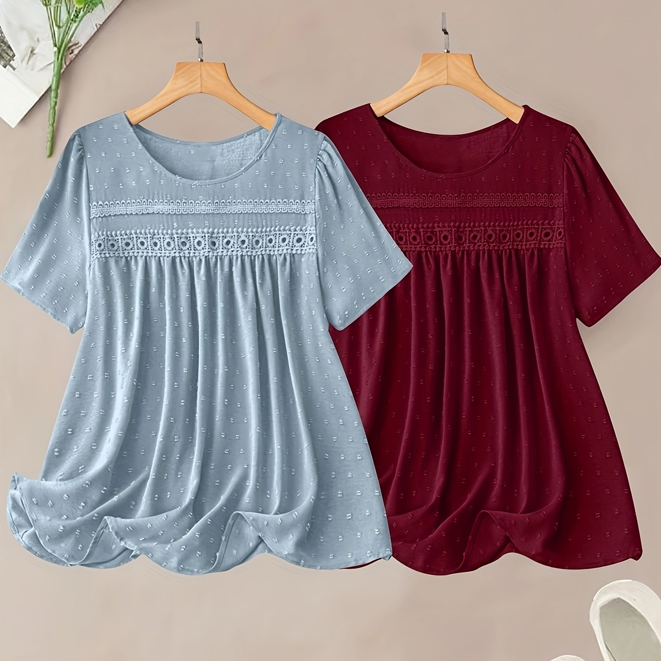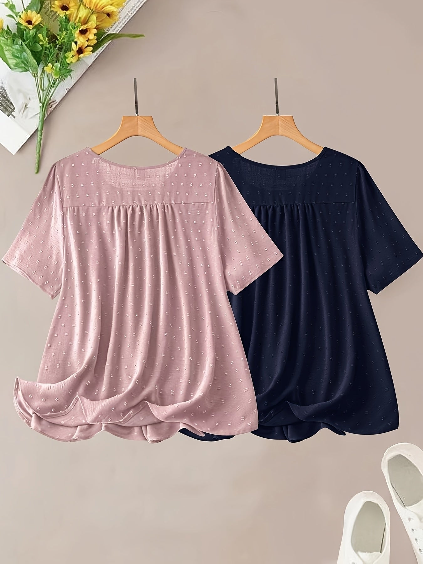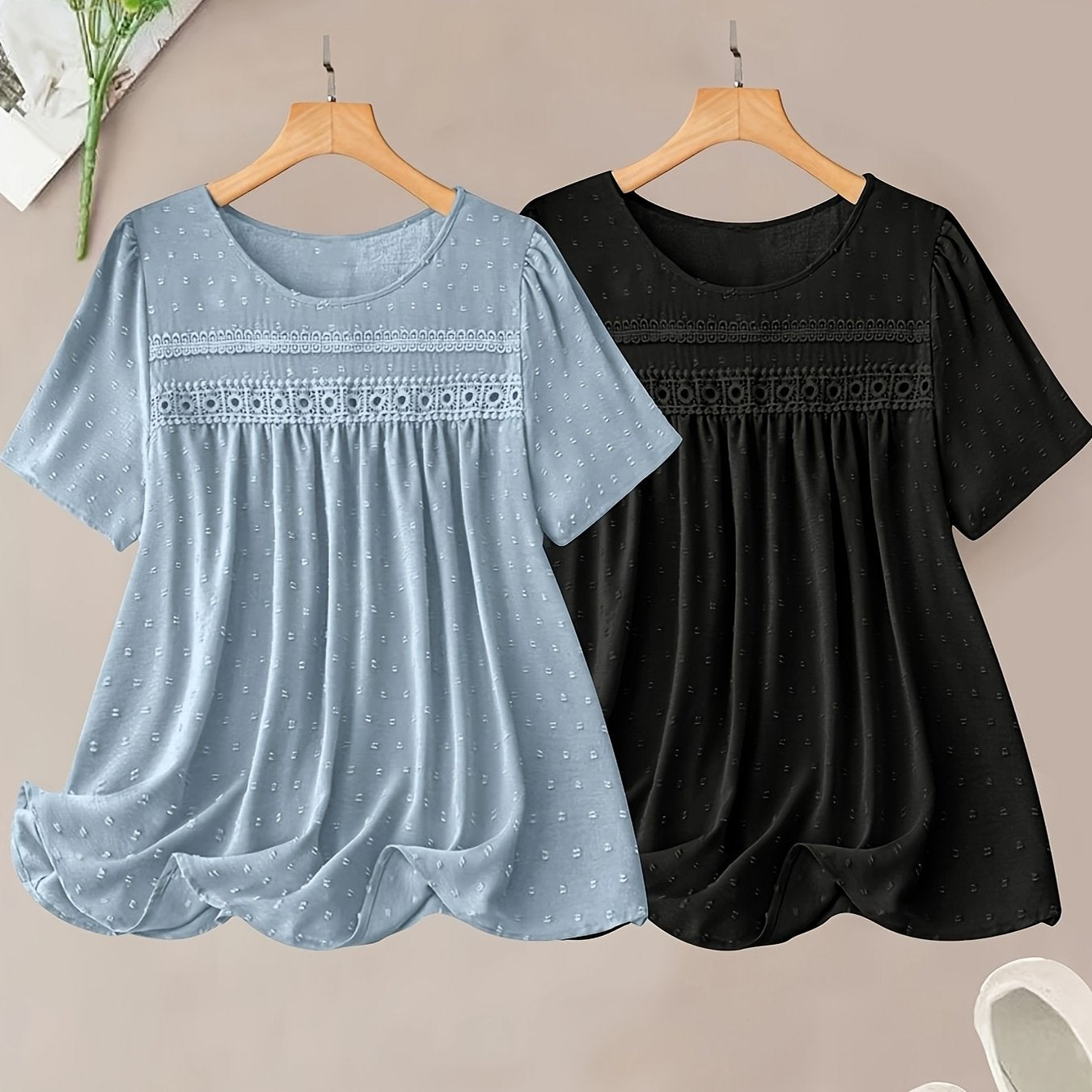 Ayollar uchun katta o'lchamli korsetli chiroyli chiziqli bluz va shortlar to'plami, pastel pushti va ko'k, kundalik zamonaviy