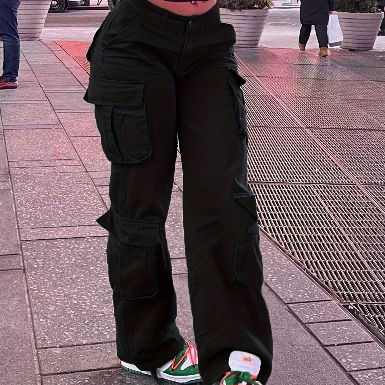 Women Plus Size Y2K Wide Leg Cargo Pants with Flap Pockets