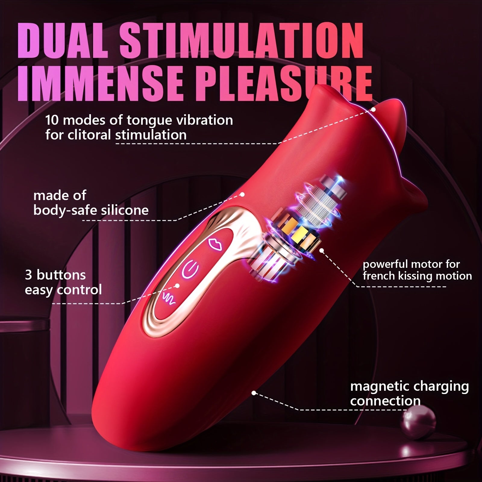 Ayollar uchun qayta to'ldiriladigan guli vibratsiya qurilmasi, til bilan lakkaklash va tishlash rejimlari bilan