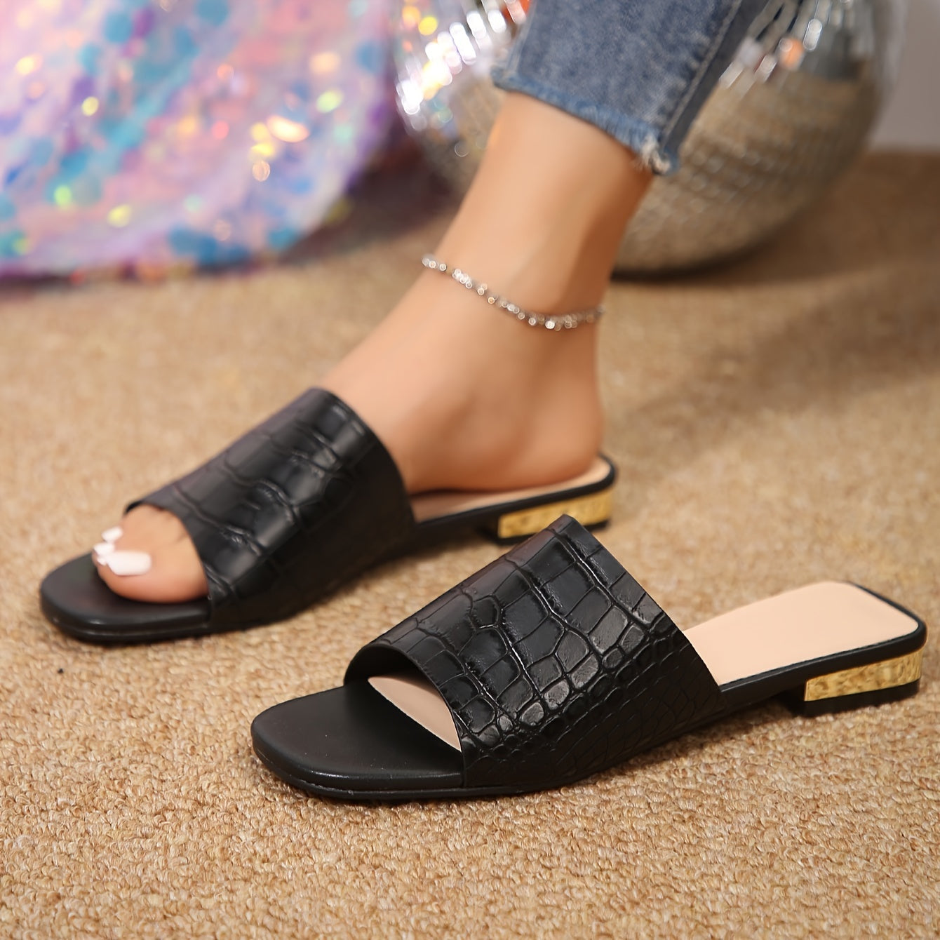Ayollar uchun hayvon naqshli slayd sandallar, kvadrat burchakli yengil tekis yozgi poyabzal.