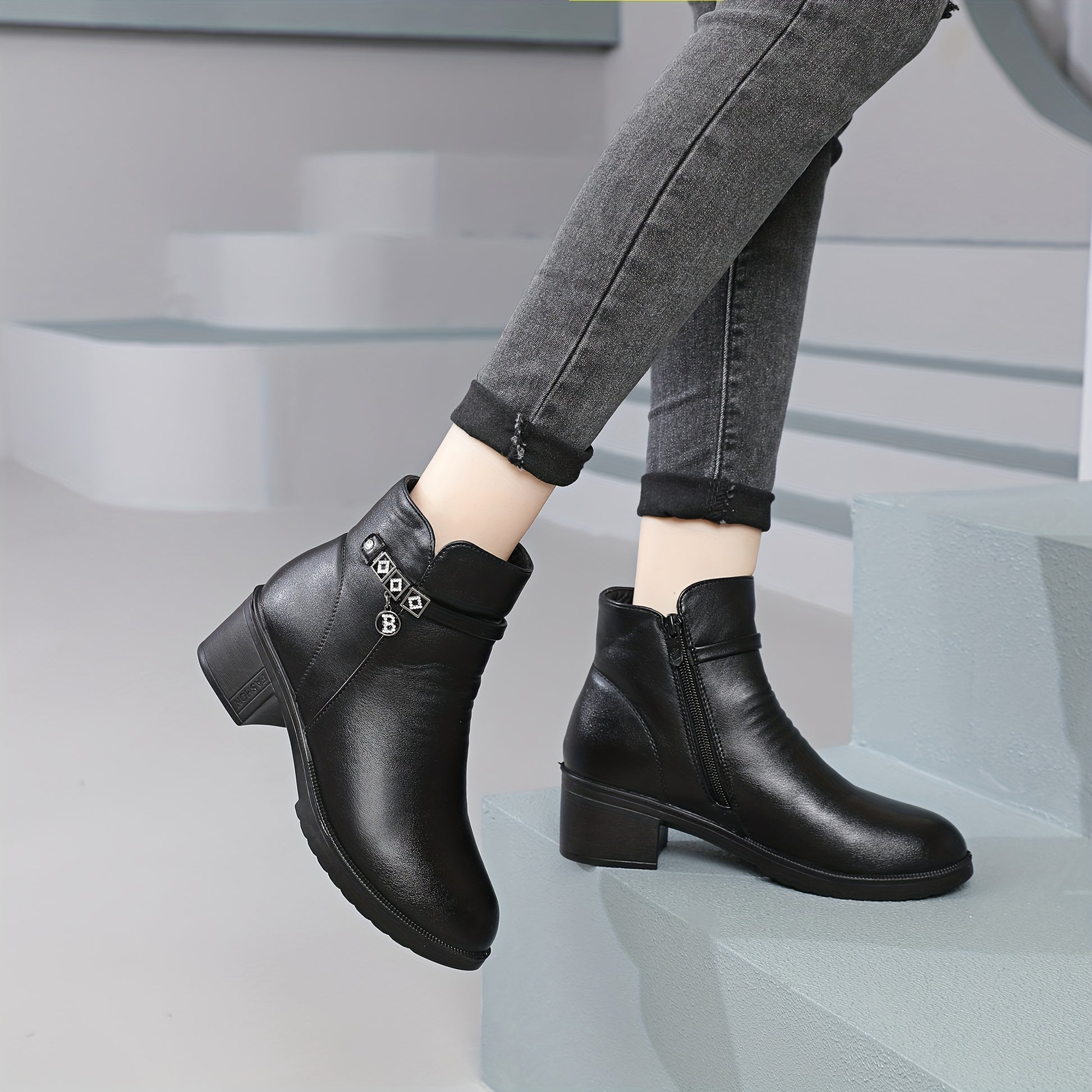 Women’s Ankle Boots With Chunky Heel Zipper Cold Weather Shoes