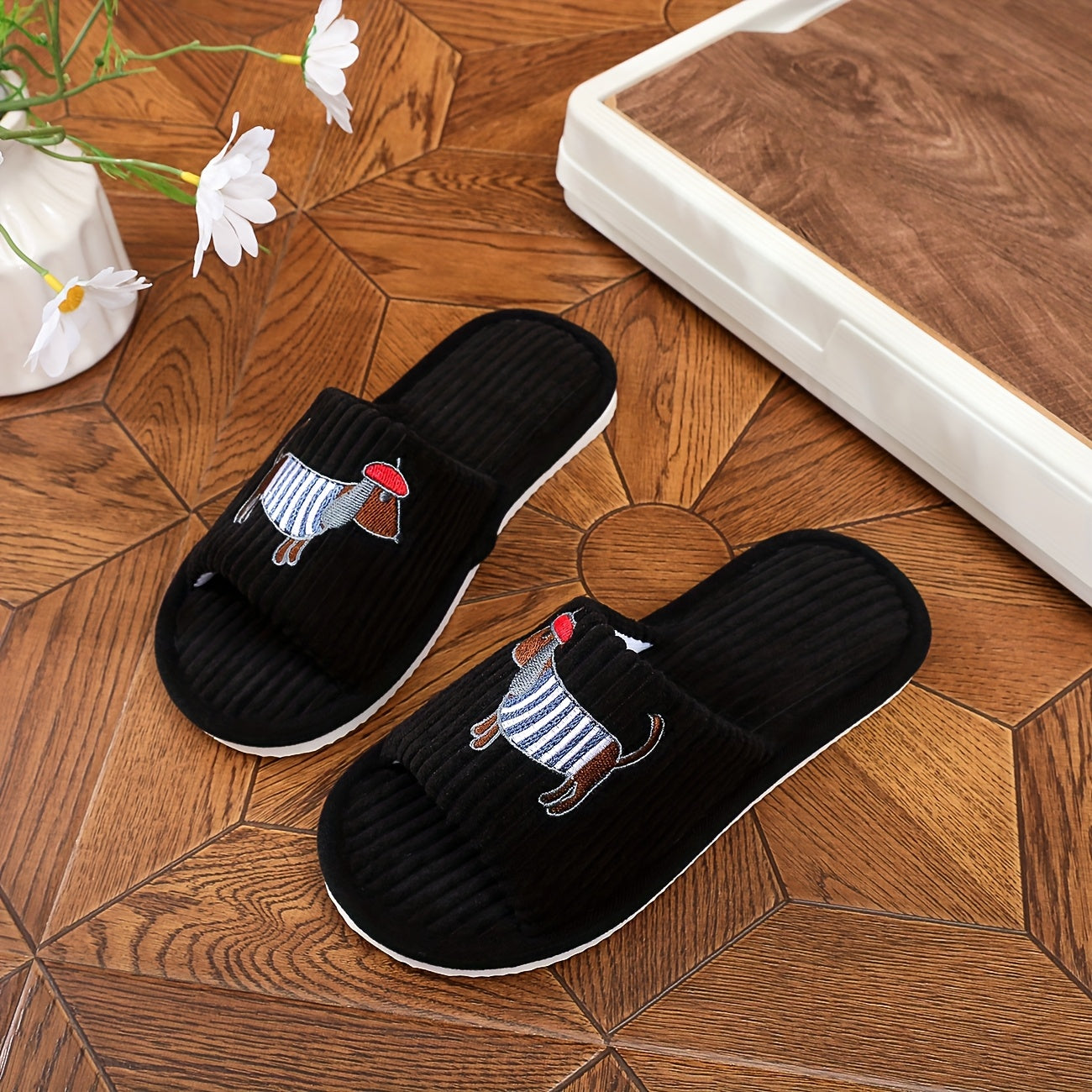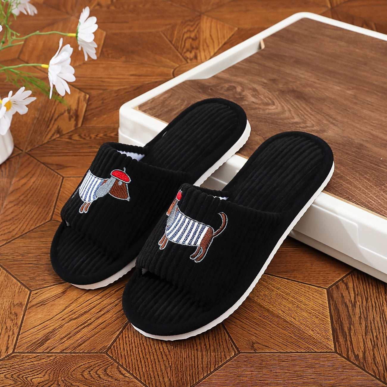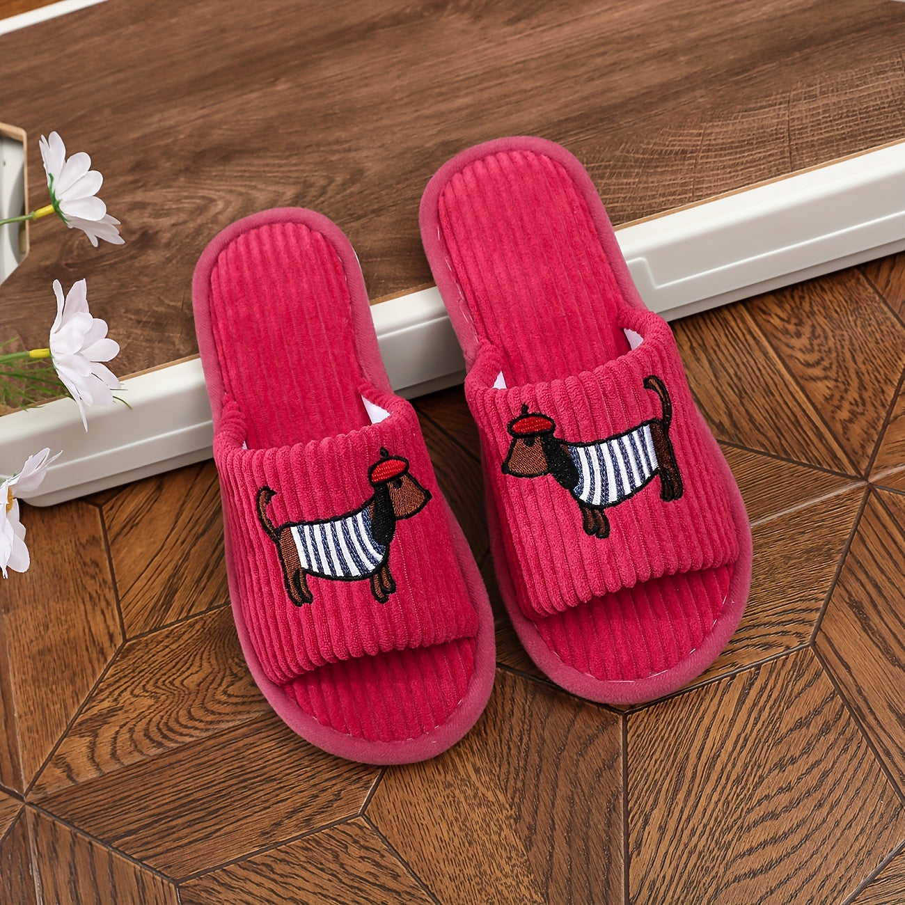 Ayollar uchun qora korduroy it poyabzali, qizil sharf bilan, ichki va tashqi foydalanish uchun poyabzal