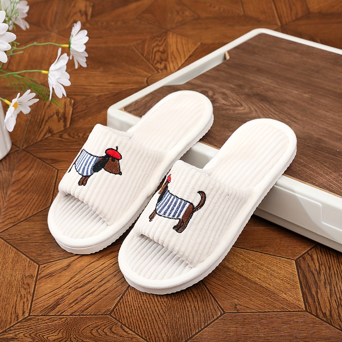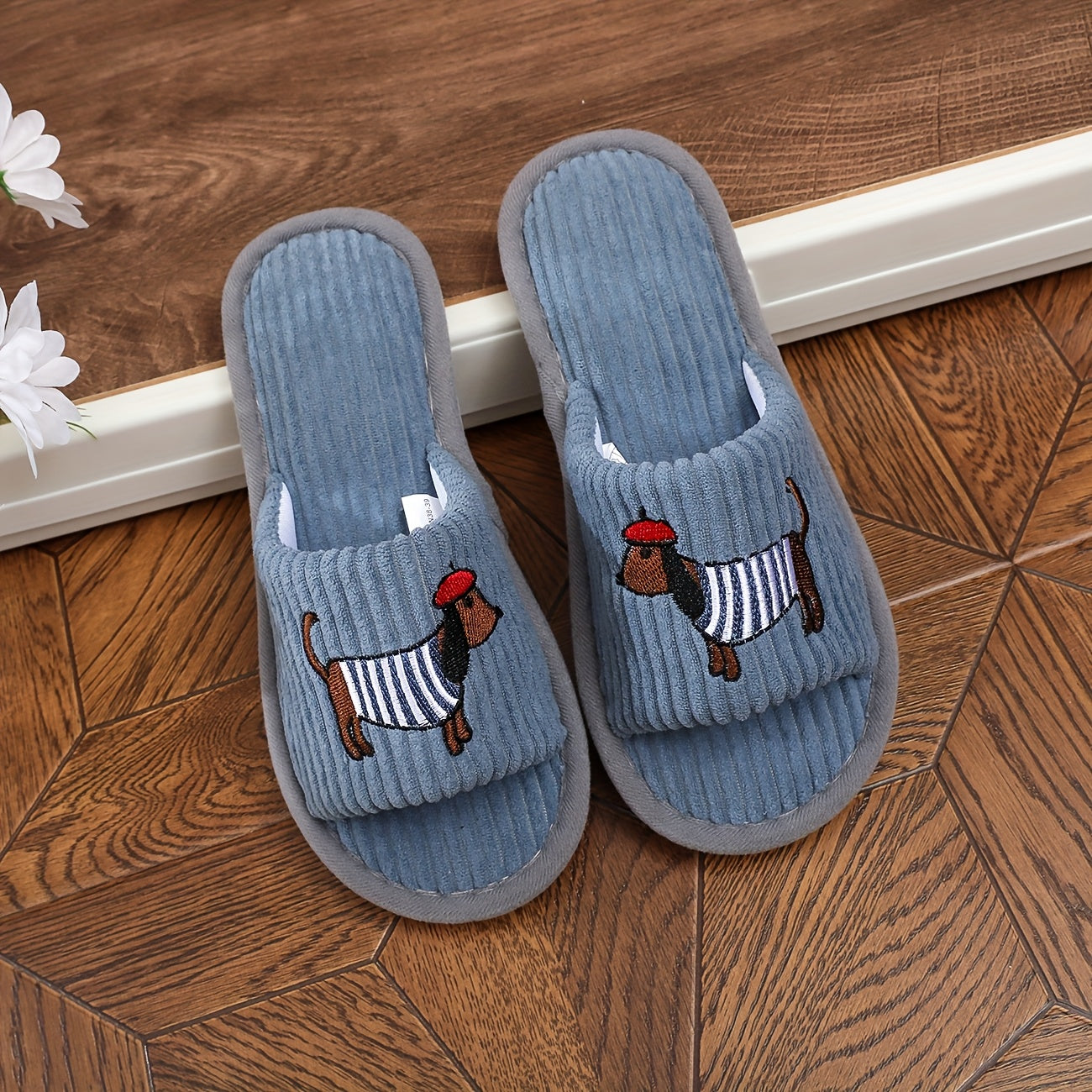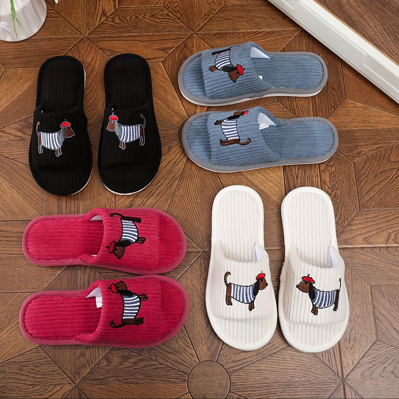 Ayollar uchun qora korduroy it poyabzali, qizil sharf bilan, ichki va tashqi foydalanish uchun poyabzal