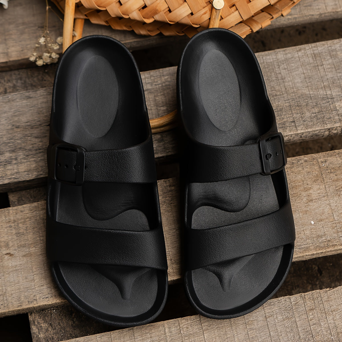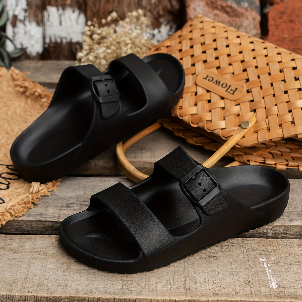 Ayollar uchun qora EVA sandallar, tekis, osongina kiyinadigan, plyaj, basseyn va kundalik foydalanish uchun oyoq kiyim