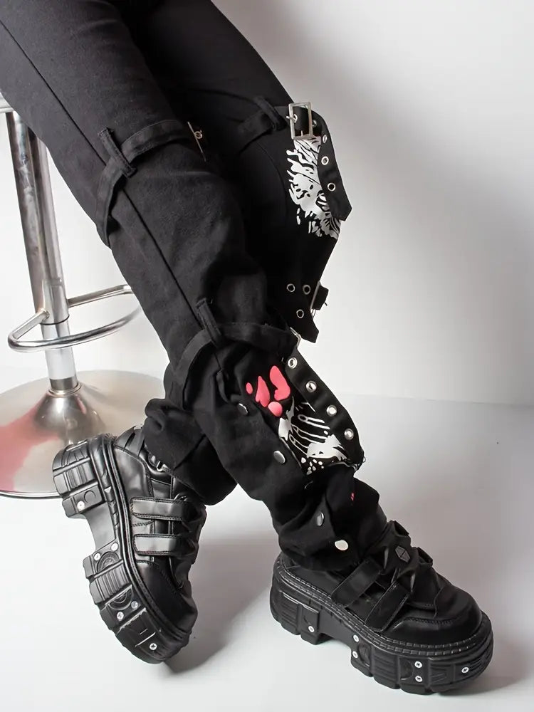 Women's Black Synthetic Y2K Gothic Punk Platform Ankle Boots