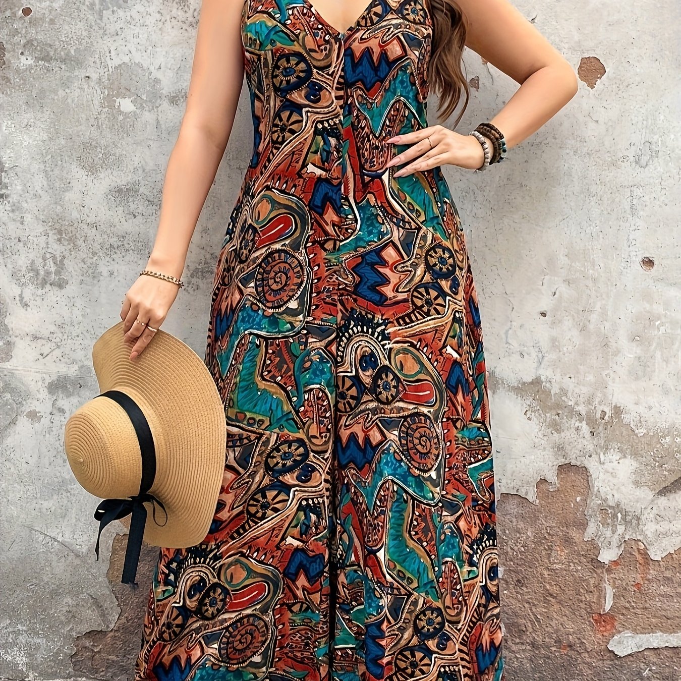 Ayollar uchun Bohem V-yuynli, bezovta qilmaydigan, keng oyoqli kombinezon, gul bosimi, kundalik