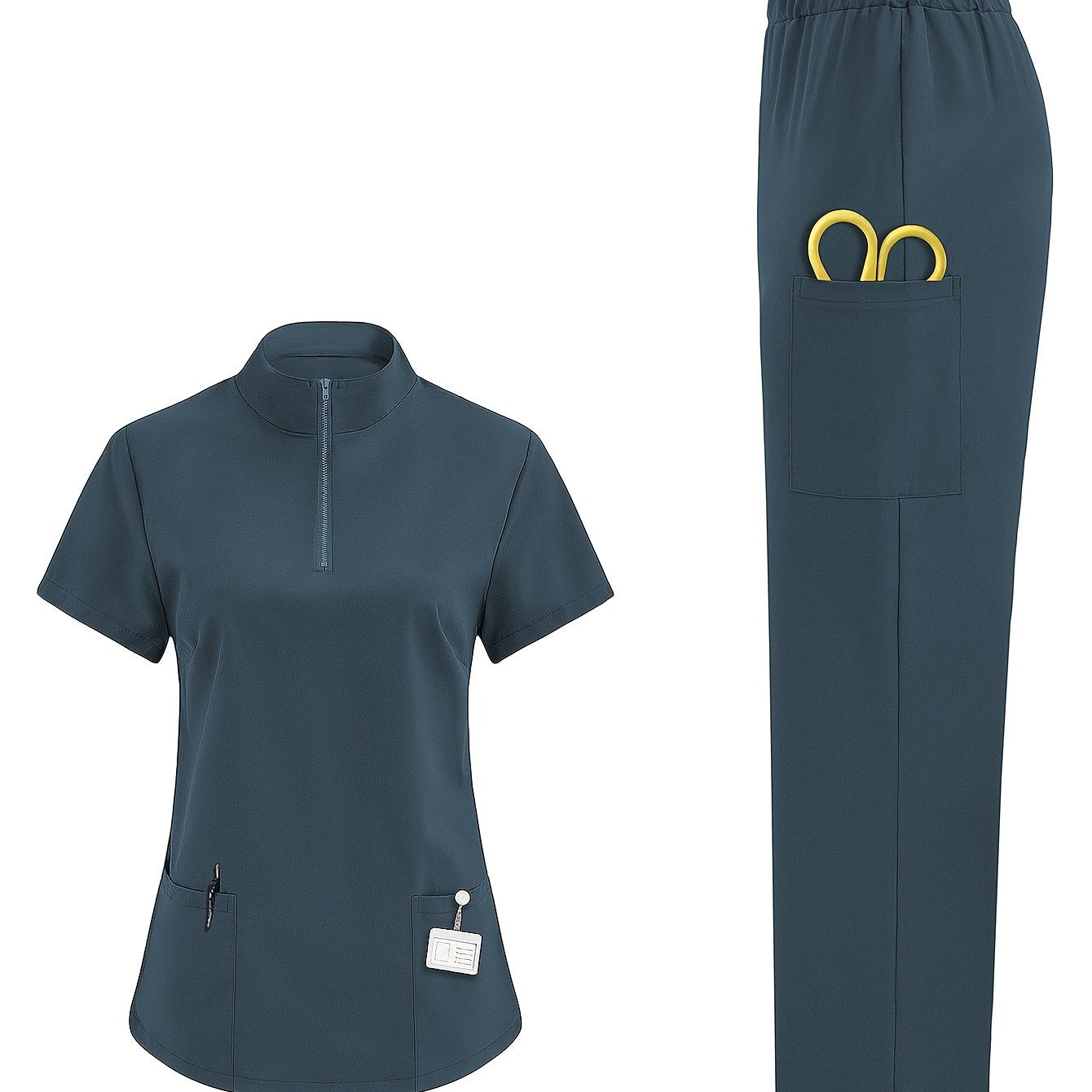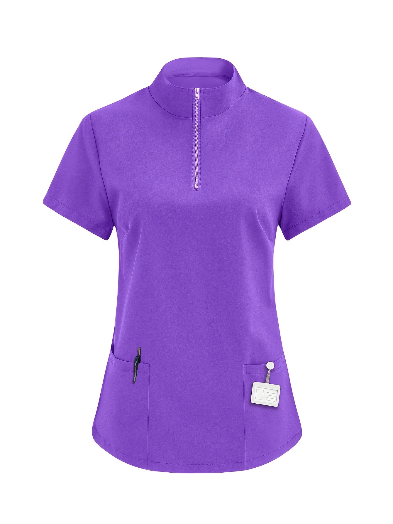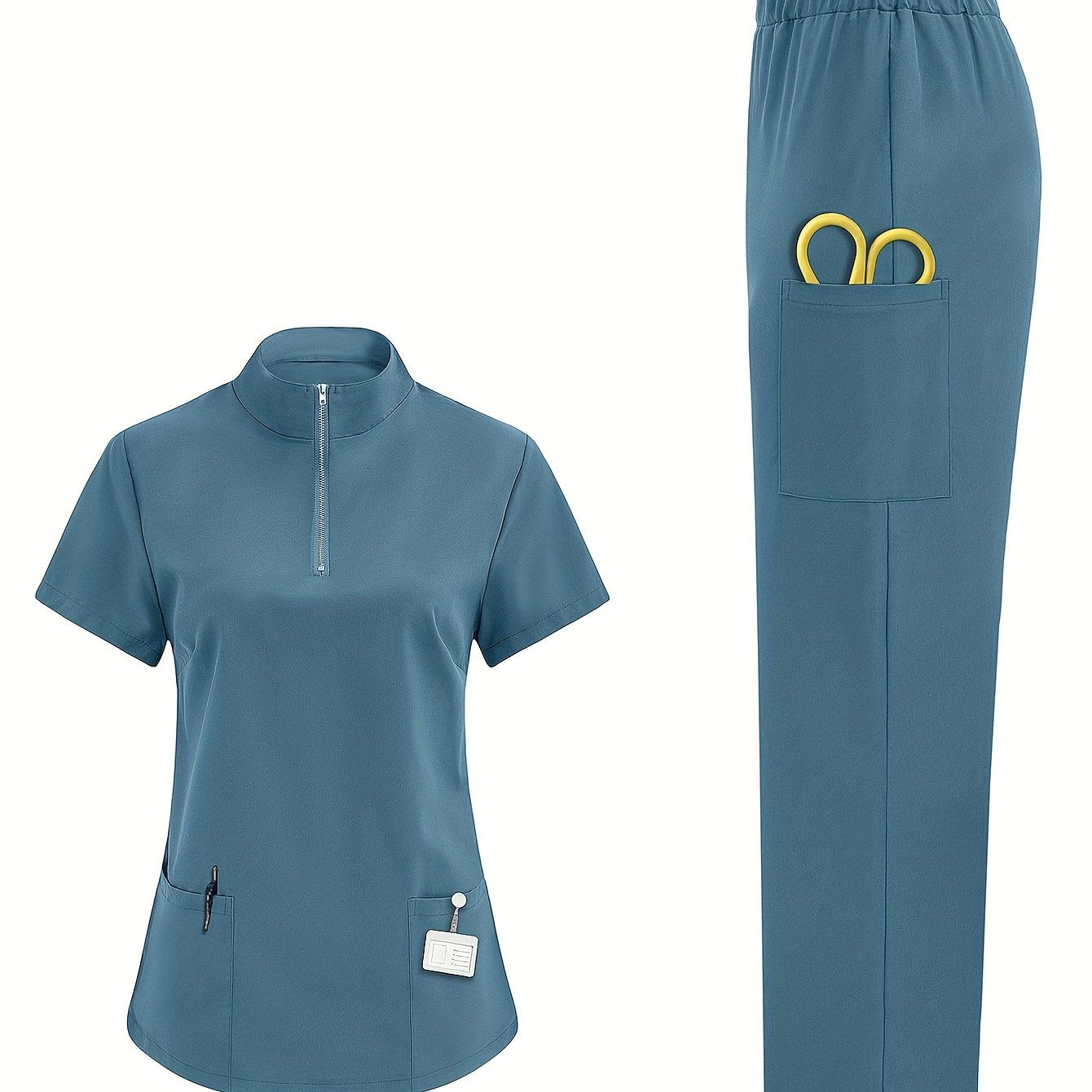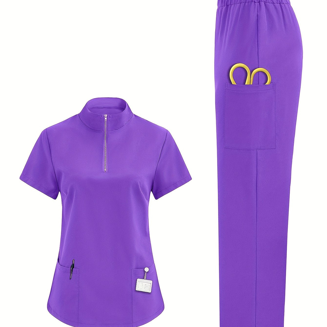 Tibbiyot mutaxassislari uchun mustahkam rangli polyester skrablar bilan ayollarning nafas oladigan sog'liqni saqlash formasi, yuqori bo'yin, cho'ntaklar bilan va barcha fasllar uchun mos.