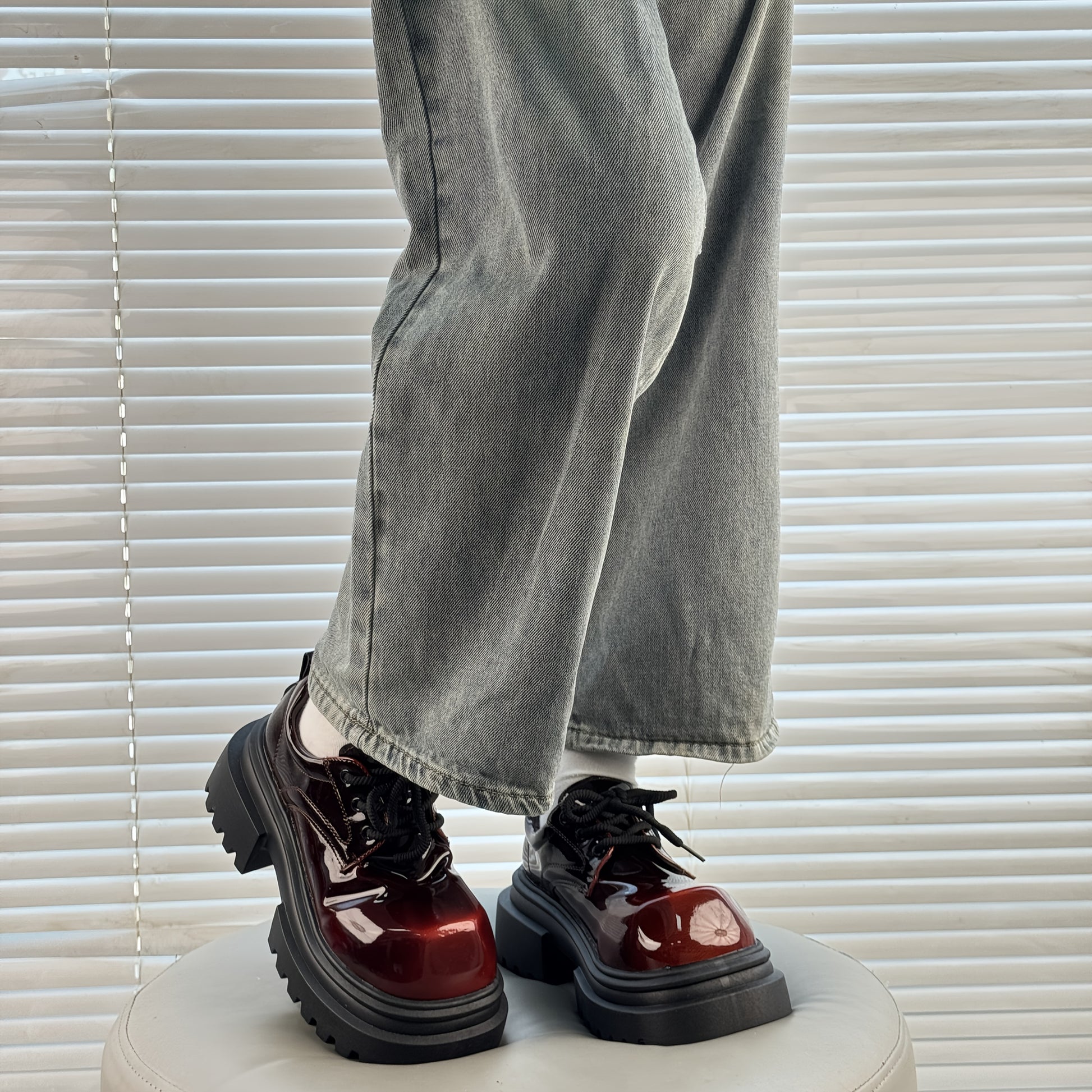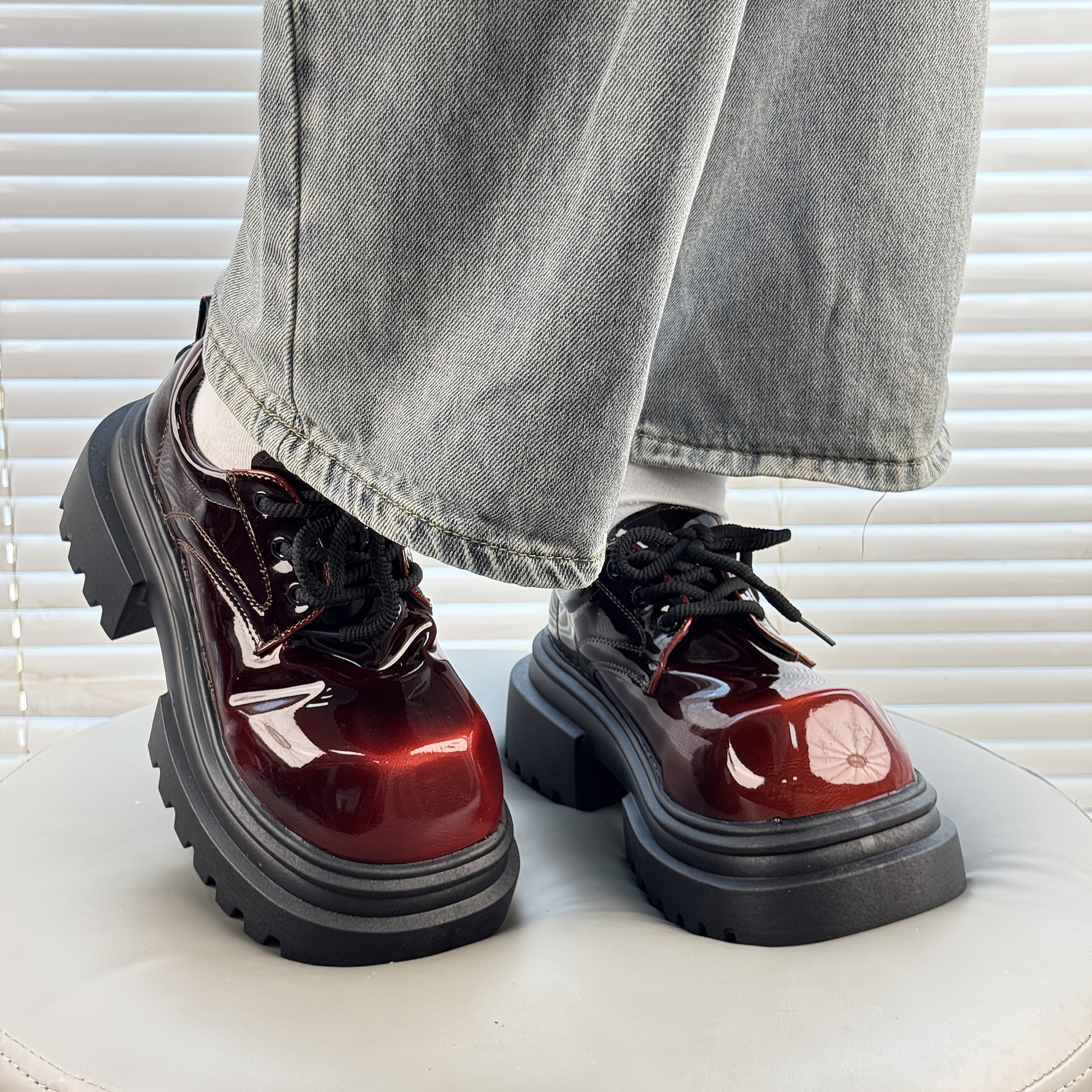 Women's Burgundy PU Chunky Shoes Non-Slip Rubber Sole For Formal & Casual