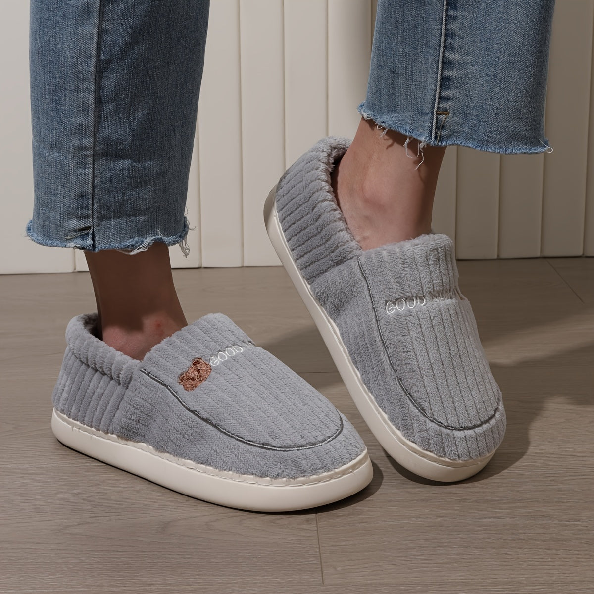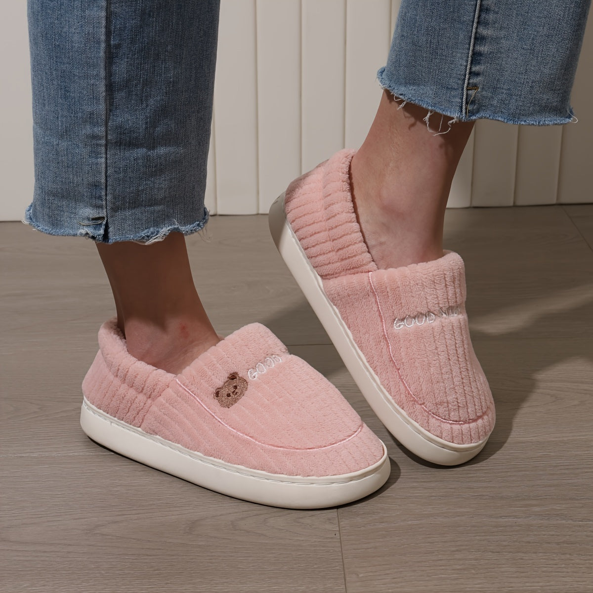 Ayollar uchun multfilm quyonli bosma qulay ichki chanoq poyabzal, yumshoq mato, TPR taglik