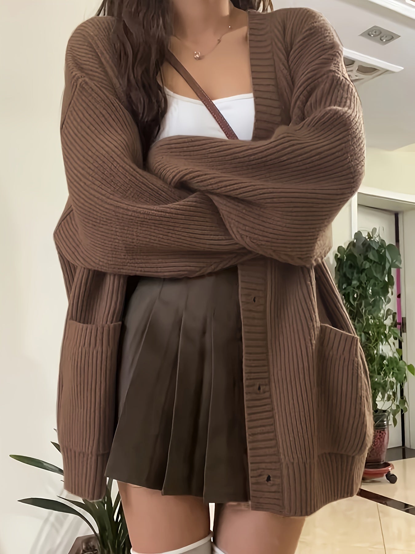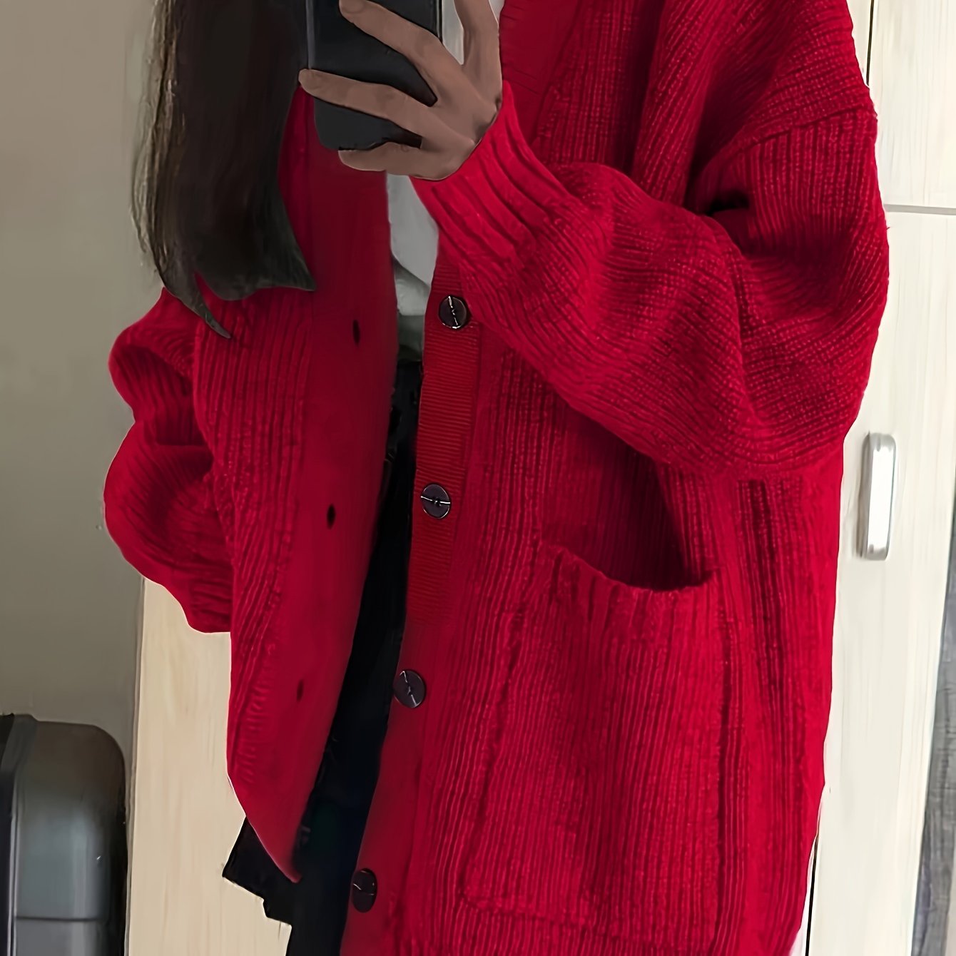 Ayollar uchun tasodifiy V-yuvalangan sviter, kuz va qish uchun mukammal.