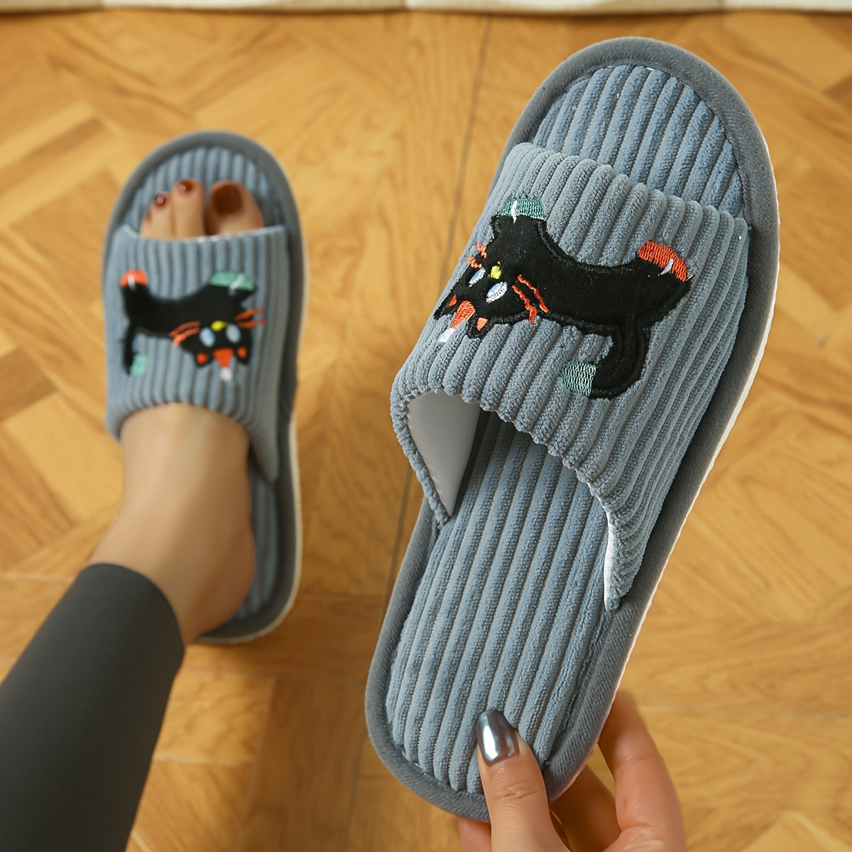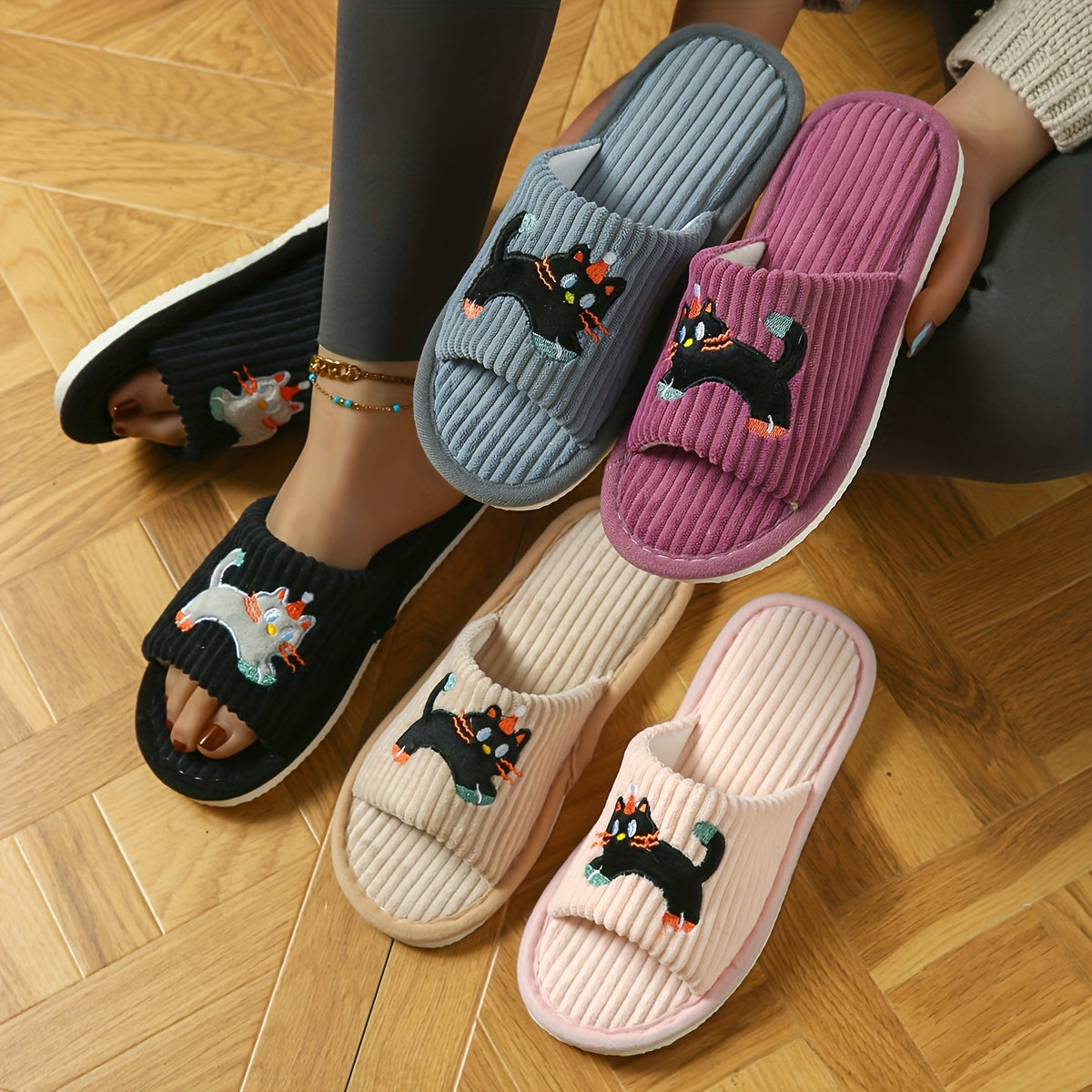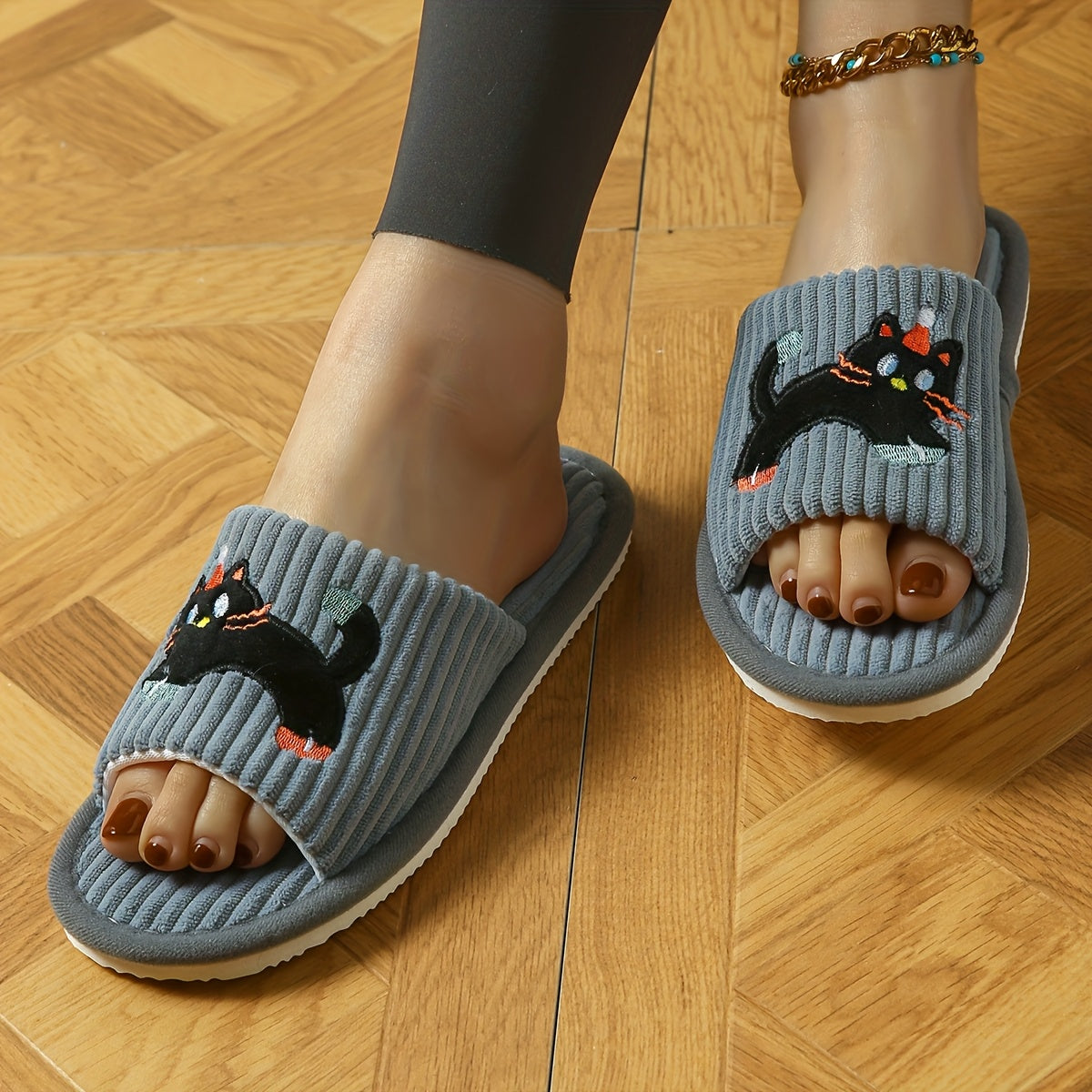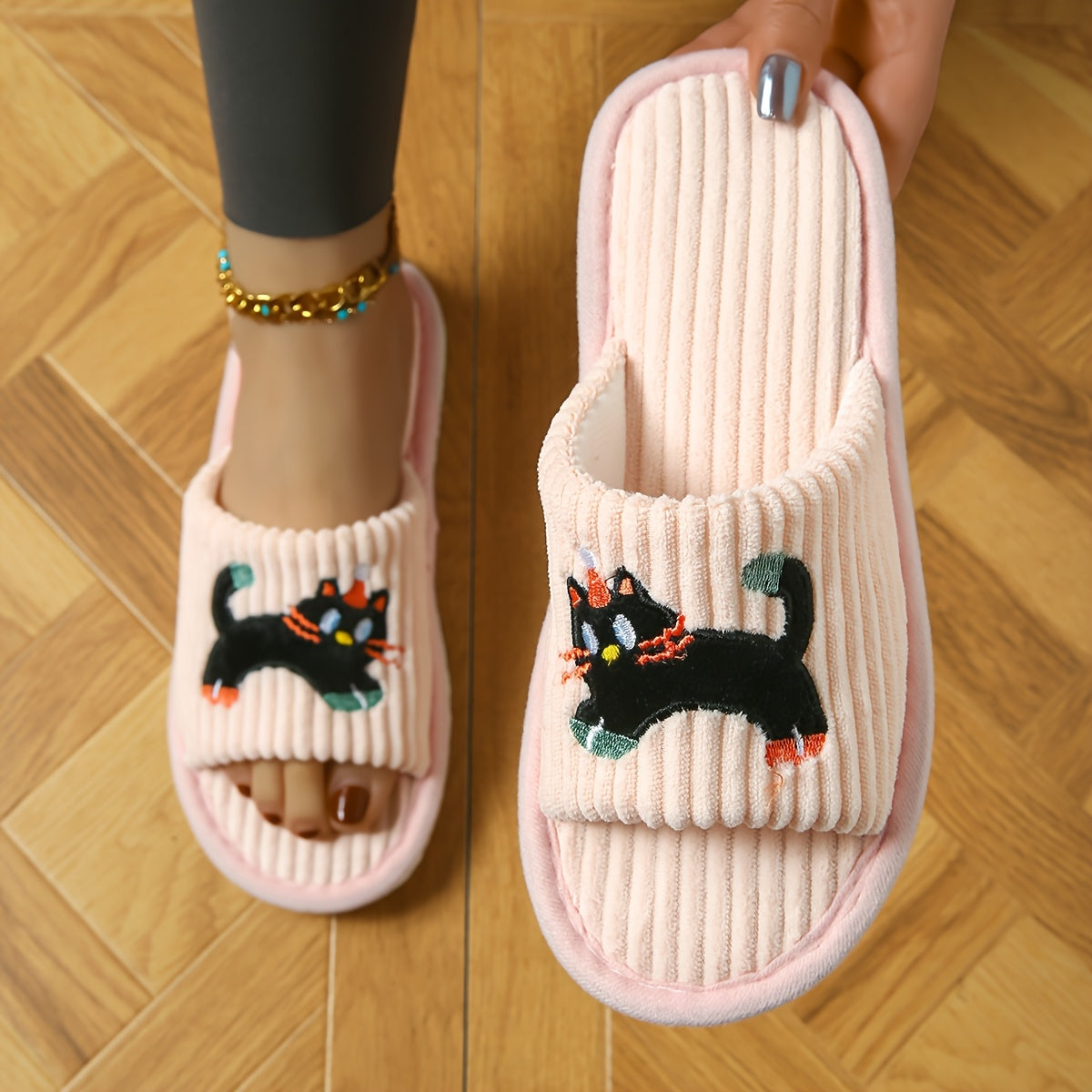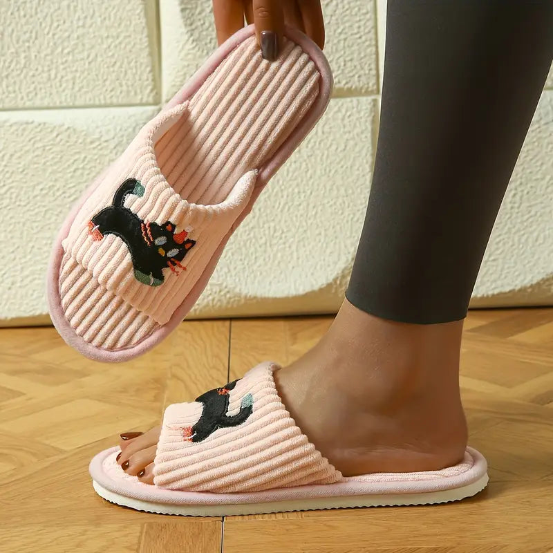 Ayollar uchun Katt dizayni chiziqli ochiq barmoqli shippaklar, yopishqoq EVA taglik bilan
