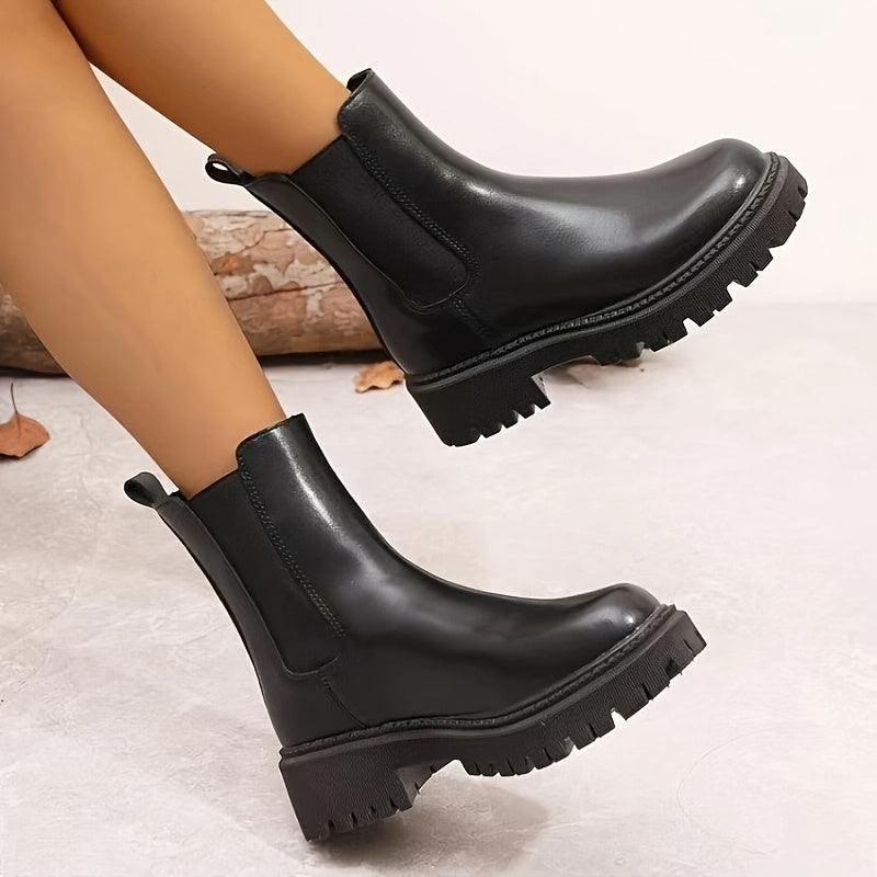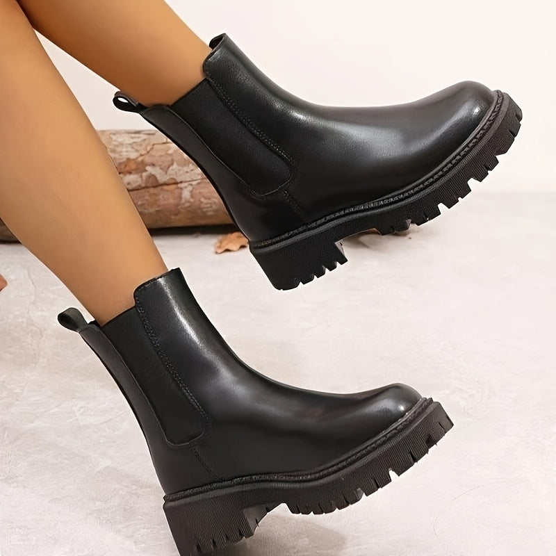 Ayollar uchun qalin platformali tizza yuqori botinkalar, sun'iy material, osongina kiyinadigan, dumaloq burchak, bardoshli, past heels