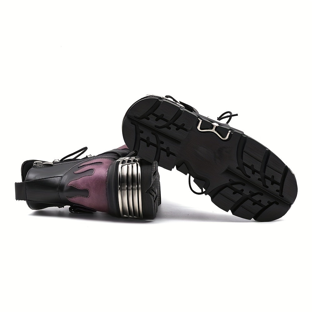 Ayollar uchun qalin platformali punk botlar yuqori top bilan, laces va zippers bilan, to'q rang va qora
