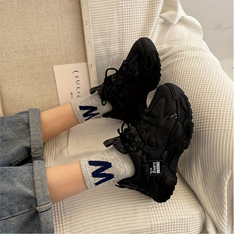 Ayollar uchun qalin krossovkalar - Havo o'tkazuvchi va zamonaviy, barcha mavsumlarga mos keladigan, sirpanmaydigan taglikka ega poyabzal