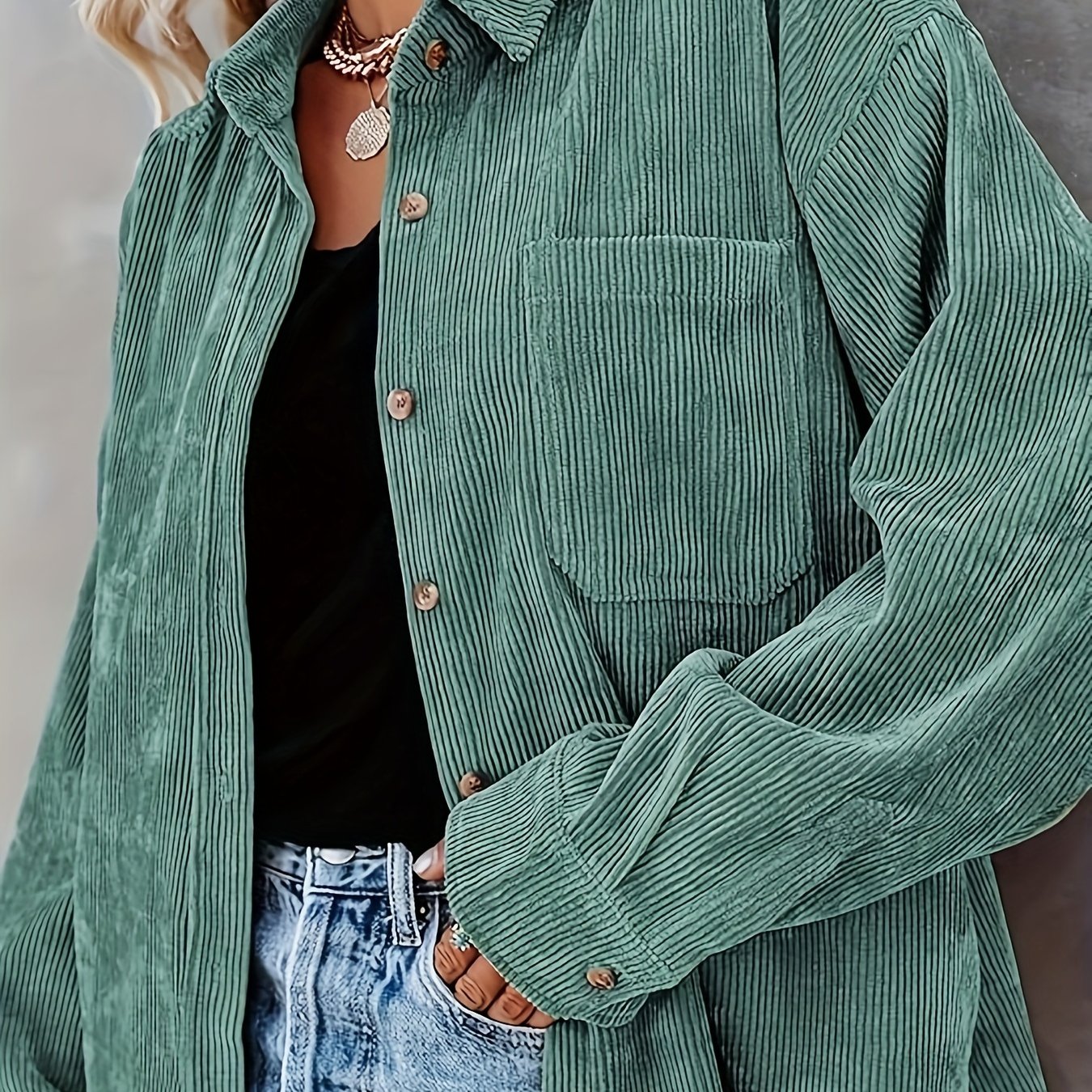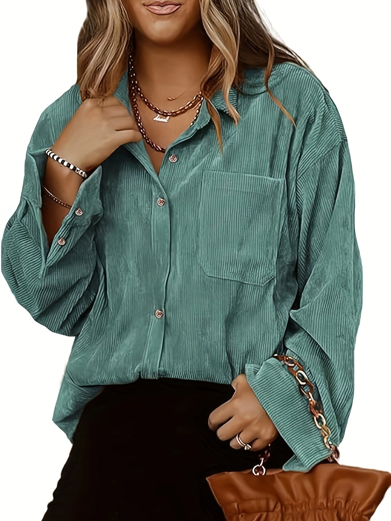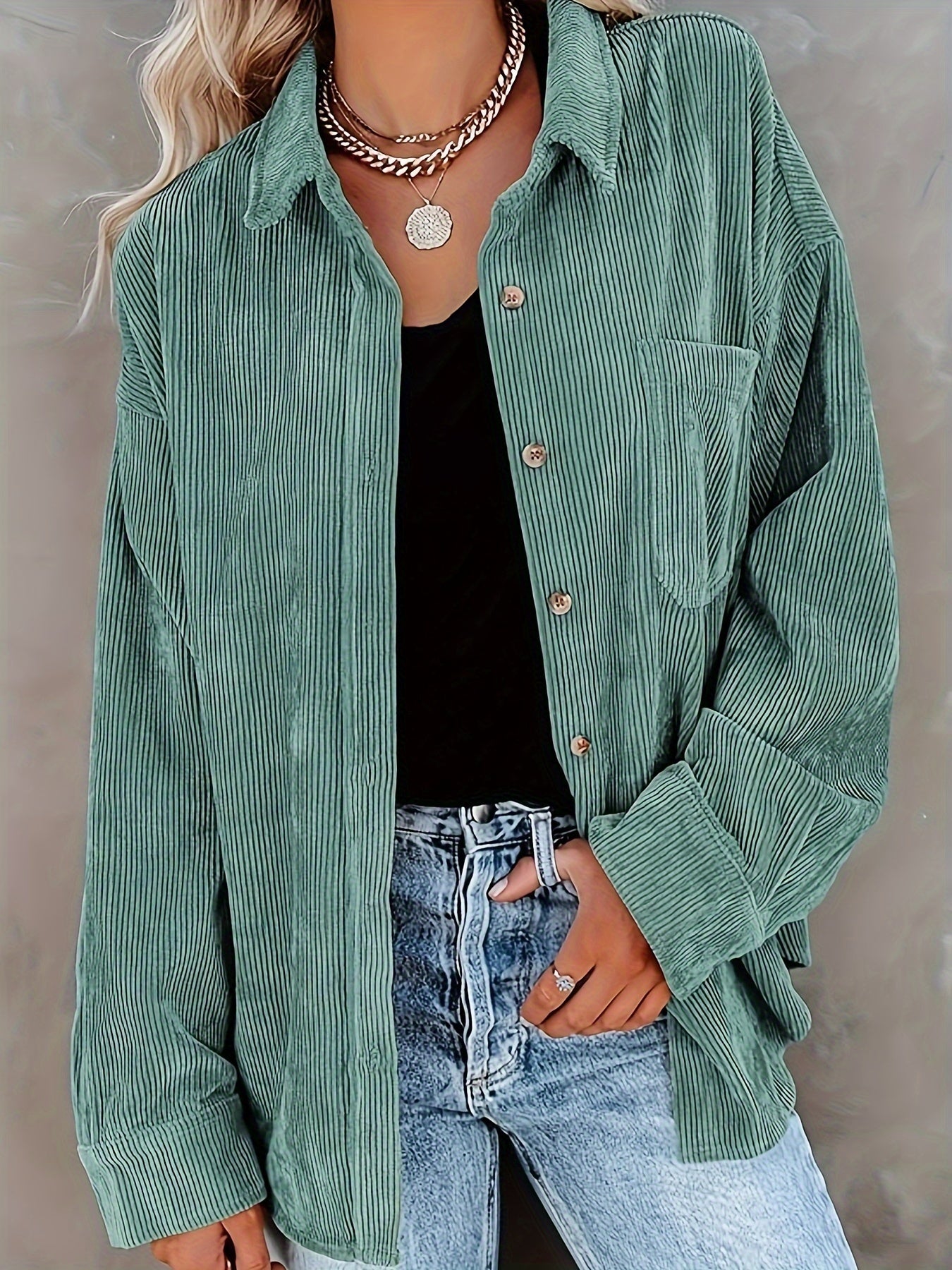 Ayollar uchun korduroy kofta uzun sleeve, kundalik, tugma bilan yopiladigan bluz