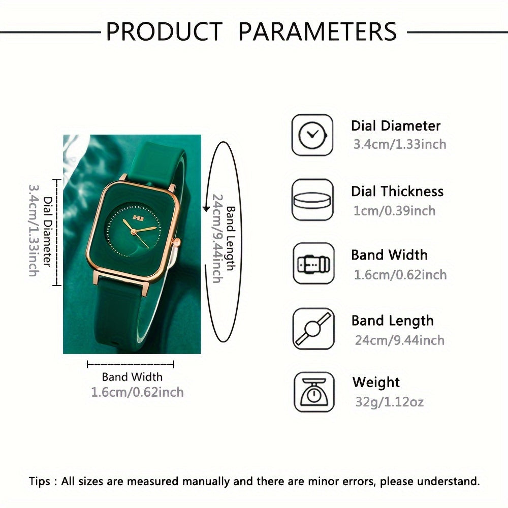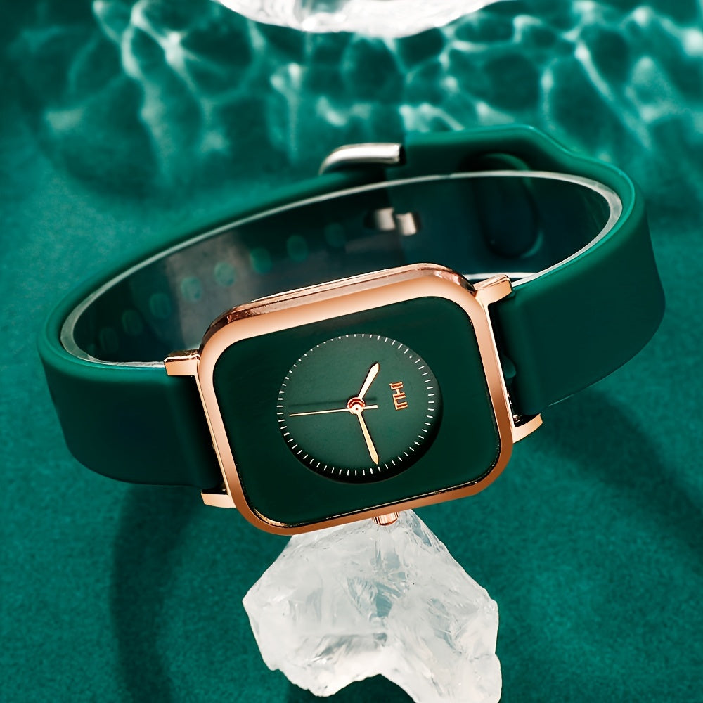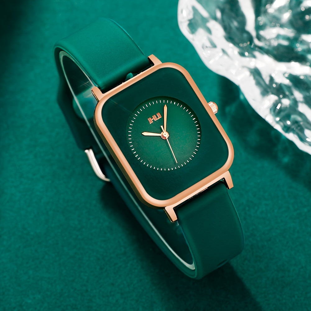 Ayollar uchun kvarts soat kvadrat zink alloy korpusi silikon taxtasi bilan zamonaviy va nafis, qayta zaryad qilinmaydigan batareya