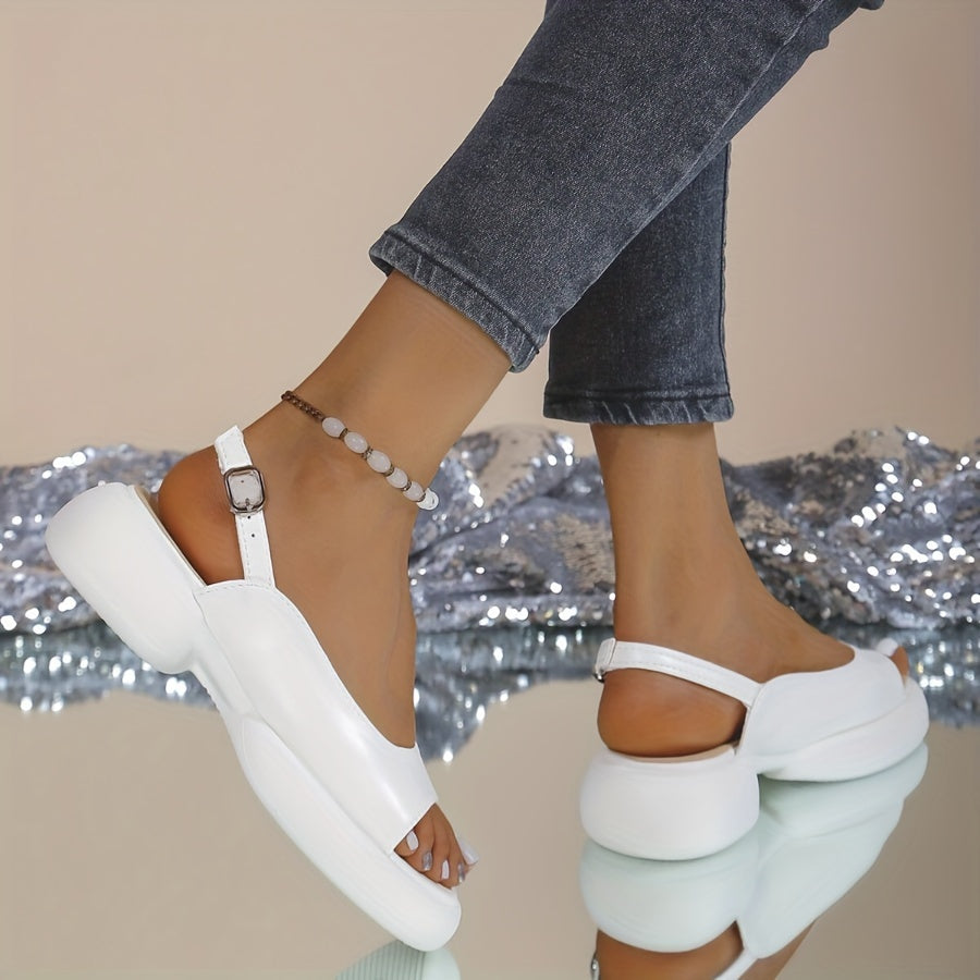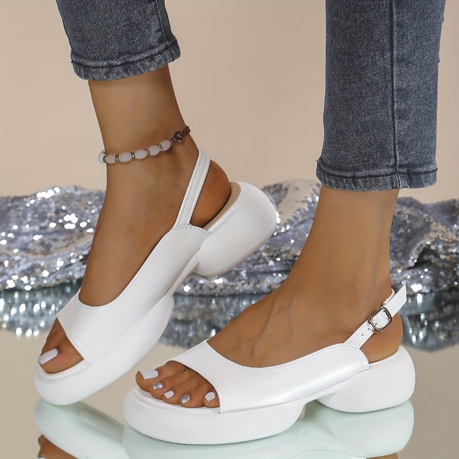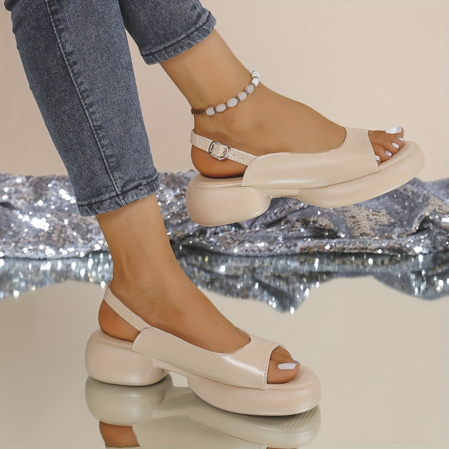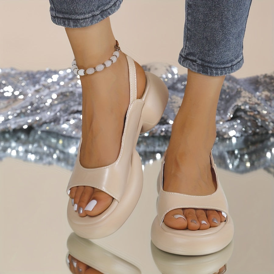 Yoz uchun yumshoq taglik va qulay blok to'pi bilan ayollar uchun nafis bir rangli bilakdan bog'langan sandallar.