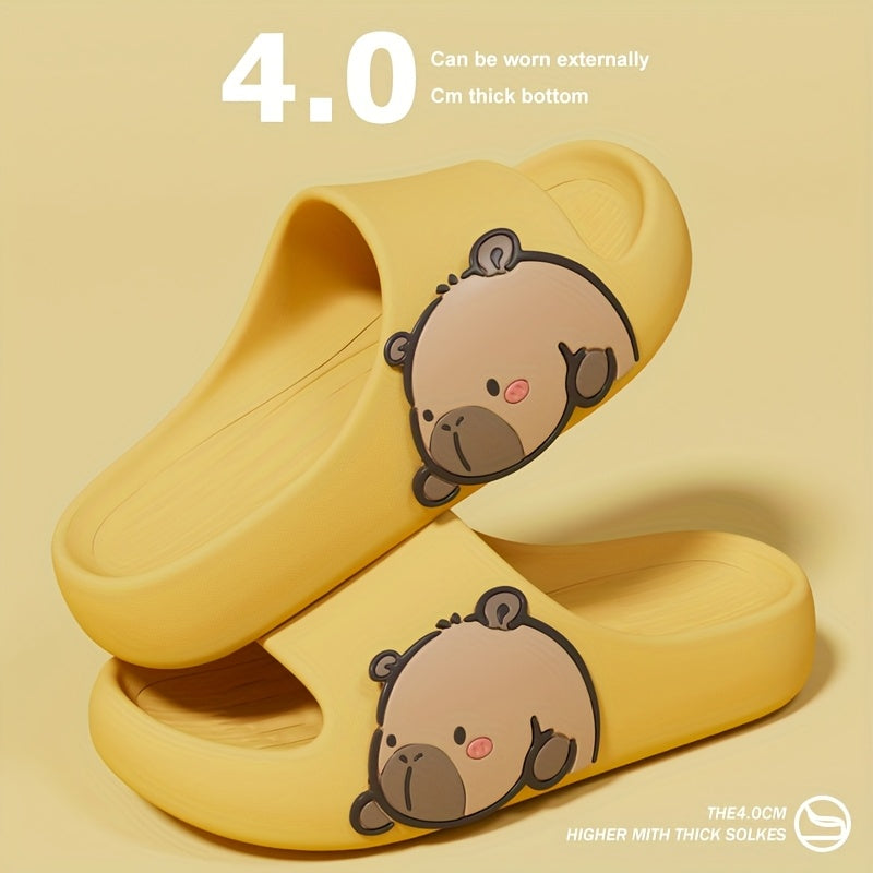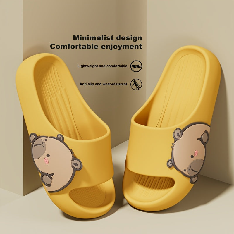 Women's EVA Slides Open-Toe Summer Sandals Black Yellow Beach & Indoor