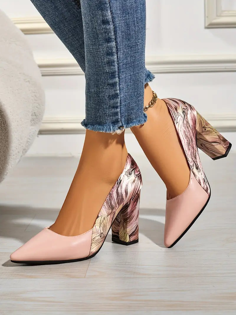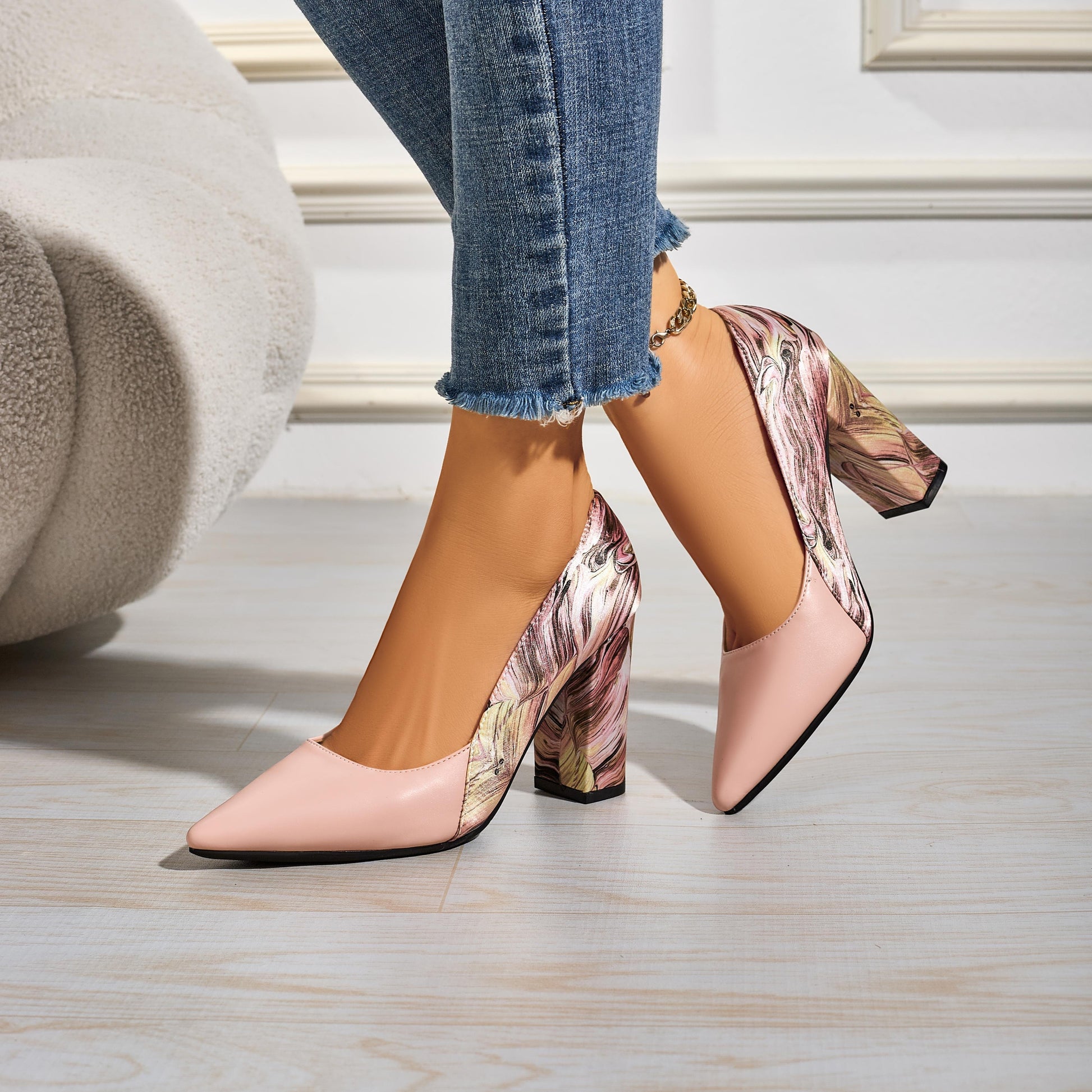 Women's Fashion High Heels Pumps with Thick Heel and Breathable Fabric