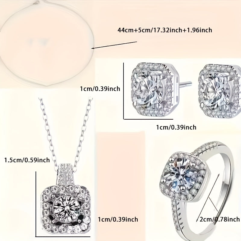 Ayollar modasi kvadrat shaklidagi soxta rhinestone zargarlik to'plami, 4 dona