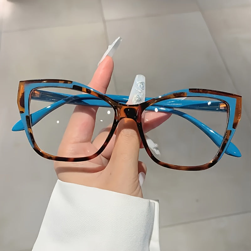 Ayollar uchun rangli blokli mushuk ko'zli ko'zoynaklar, shaffof linzalar, kompyuter ko'zoynaklari