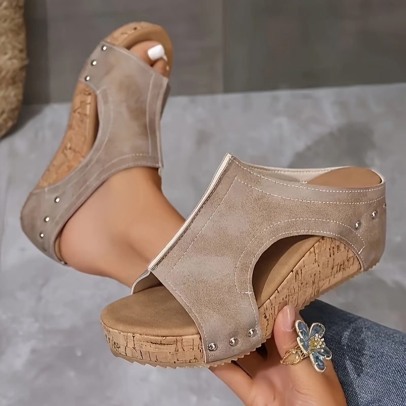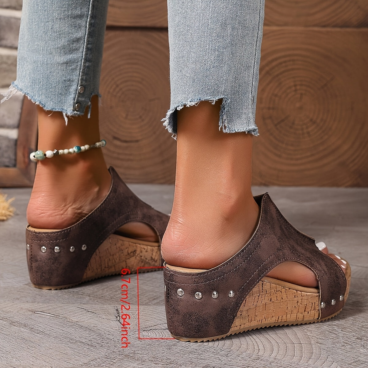 Ayollar uchun faux charmli slayd sandalilar, studli detall va qiyalik taglik bilan
