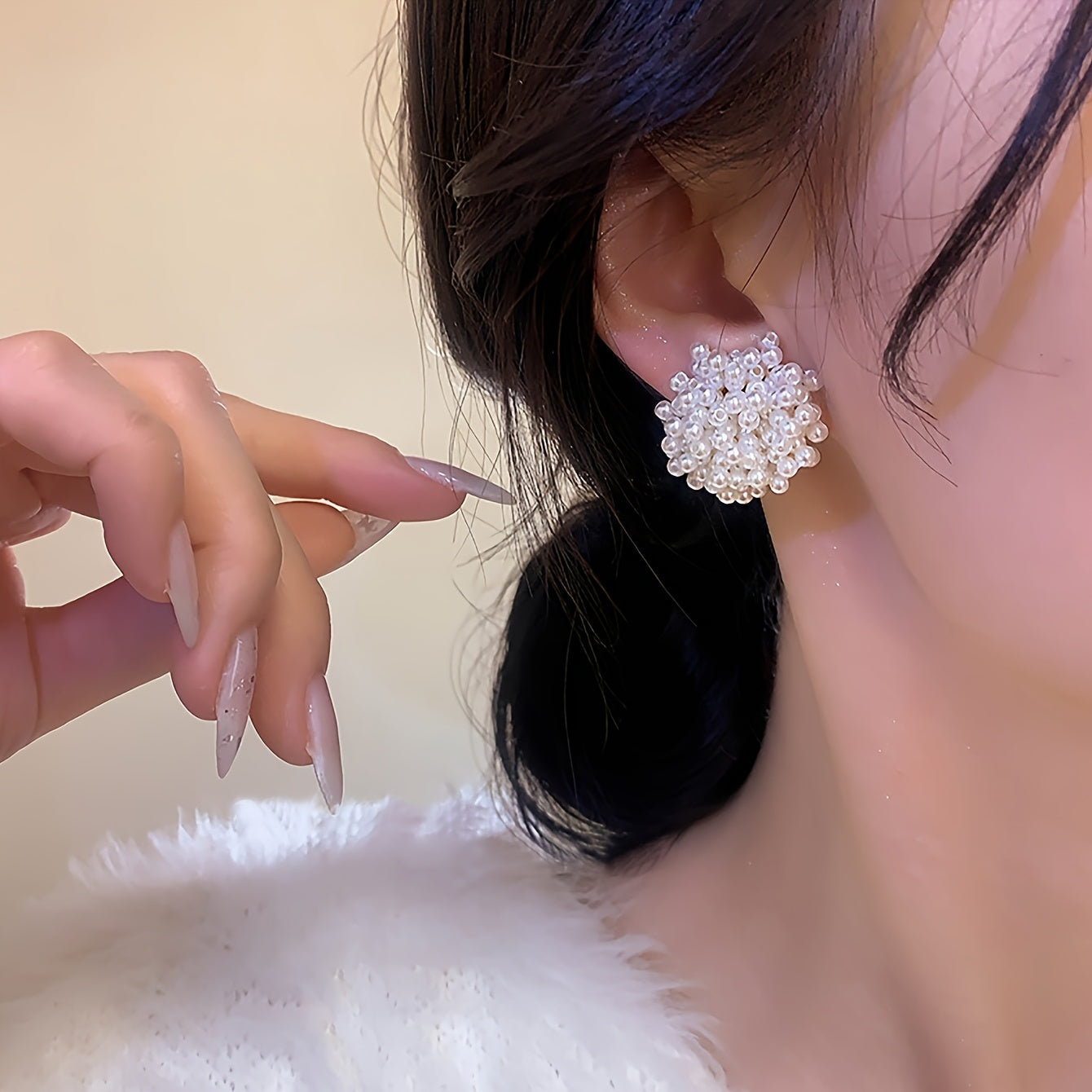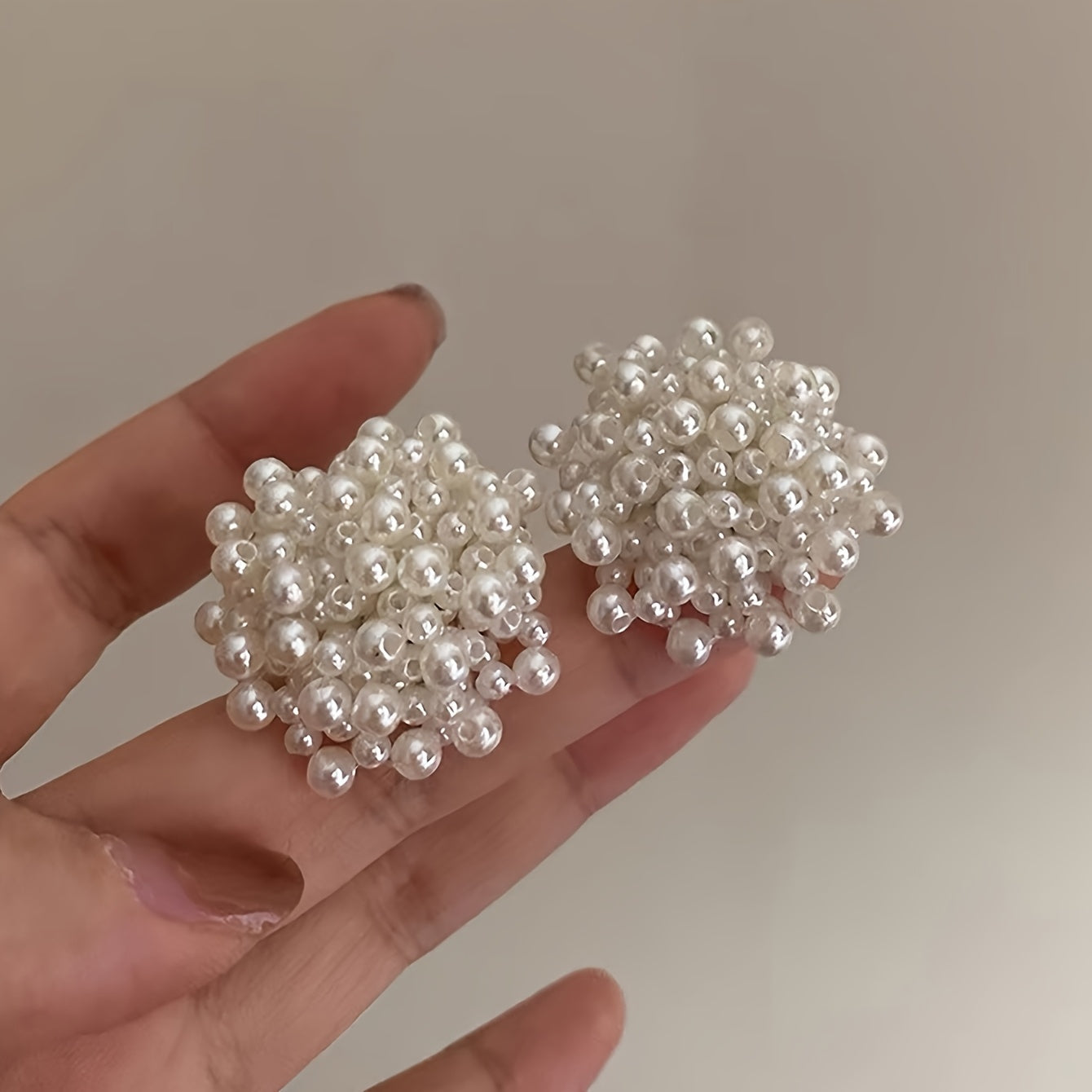 Ayollar uchun faux marjonli stud uzuklar, nafis sferik fransuz uslubidagi zargarlik buyumlari