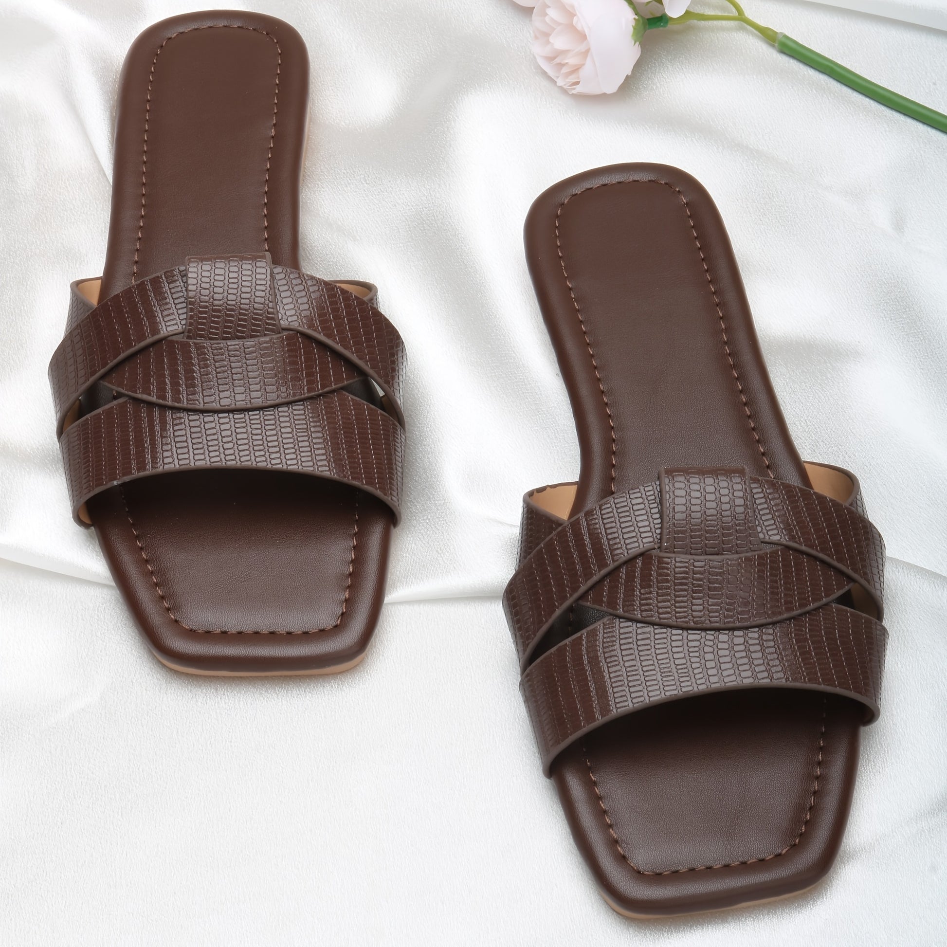 Women's Flat Sandals Adjustable Strap Open-Toe Summer Slippers Brown